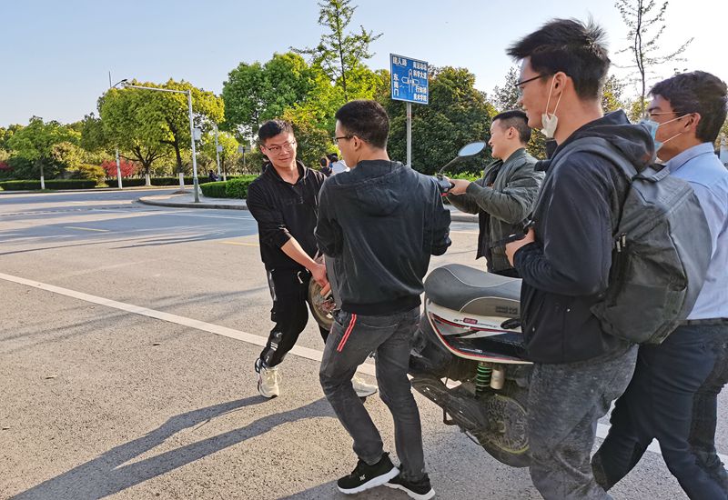 员工党员做好“我为师生办实事”,课余将楼前长期滞留、无人问津的大量废旧电频车和自行车进行集中整理,为同学们腾出更多停车空间,解决上课时间车辆拥堵现象。