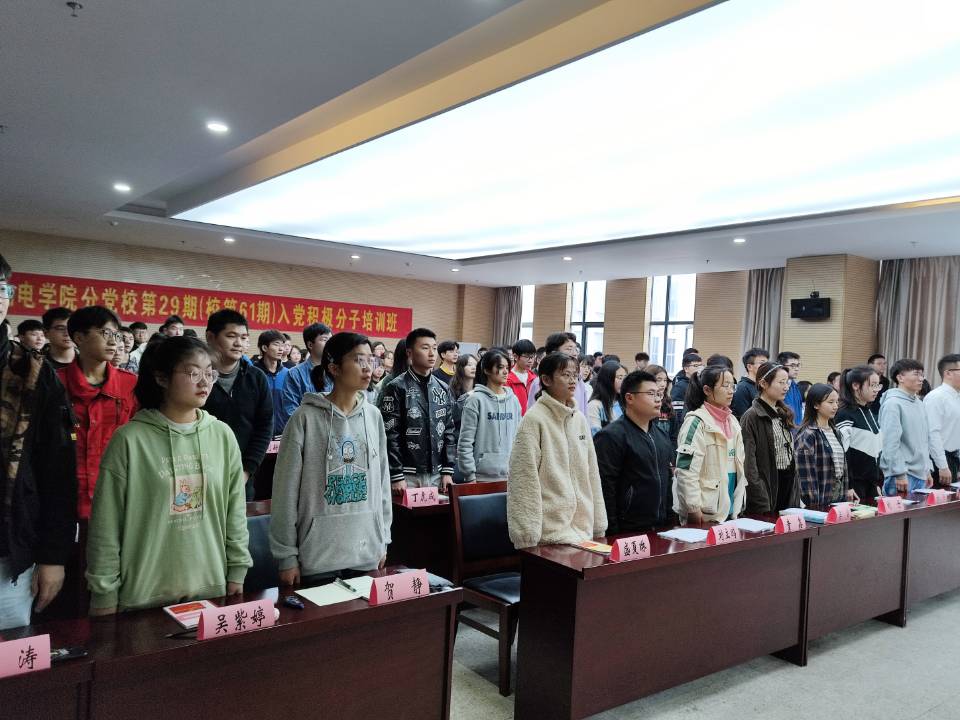伴随着嘹亮的国歌,开班大会拉开序幕。李娟在致辞中首先代表公司党委向参加此次培训班的全体学员表示欢迎和祝贺,并对本次培训学员提出三点希望与要求:一是切实认识到入党积极分子培训班的重要性。二是倍加珍惜党校学习的机会;三是切实保证本次培训班学习效果,上课认真听并学习运用实践。学员代表18自动化苏阳东代表发言,鼓励大家不忘初心,严于律己,扬帆远航。会上,李娟和黄友生为培训班学员代表发放《先锋》学习手册。