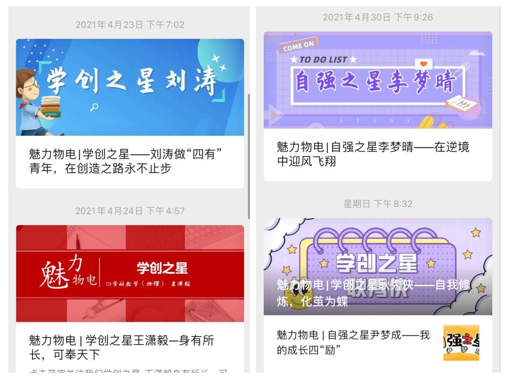 五四”前夕,公司团委推出物电“星”榜样网上系列报道,用文字和图片展现物电员工中的典型事迹和奋斗故事,提高线上主题团日活动针对性和亲和力。
