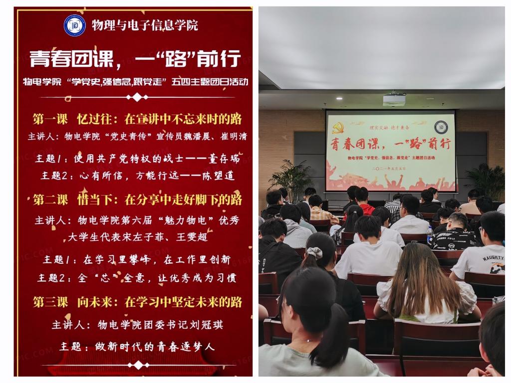 微团课分三部分进行。第一课《忆过往:在宣讲中不忘来时的路》,由公司“党史青传”宣传员魏潘晨、崔明清展开,他们用最真切、美好的青年之声向我们分享了他们心中的英雄董存瑞、陈望道。第二课《惜当下:在分享中走好脚下的路》,由公司第六届“魅力物电”优秀老员工代表宋左子菲、王雯超现身说法的讲述她们大学的成长与蜕变,展现出把热爱做到极致的青春本色。第三课《向未来:在学习中坚定未来的路》,由刘冠琪讲述“立心、力行”做新时代的青春逐梦人,在美好韶华中做不忘初心的奋斗者。每场微团课之间,五四主题视频、朗诵《可爱的中国》节选等,进一步激发青年学子爱国爱党热情。
