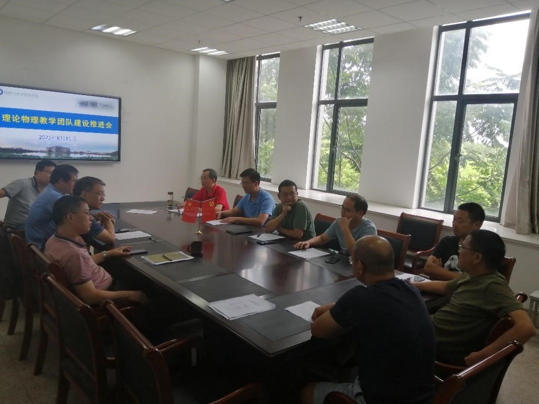 本网讯(m88)近日,m88省级理论物理教学团队建设推进会在物理楼209会议室举行。校教务处副处长崔光磊、科研处副处长、教学团队负责人许新胜、物理专业负责人吕建平、物理实验中心主任张先燚、理论与计算物理教研室教师以及教学团队成员代表参加了本次会议。会议由教研室负责人张季谦主持。