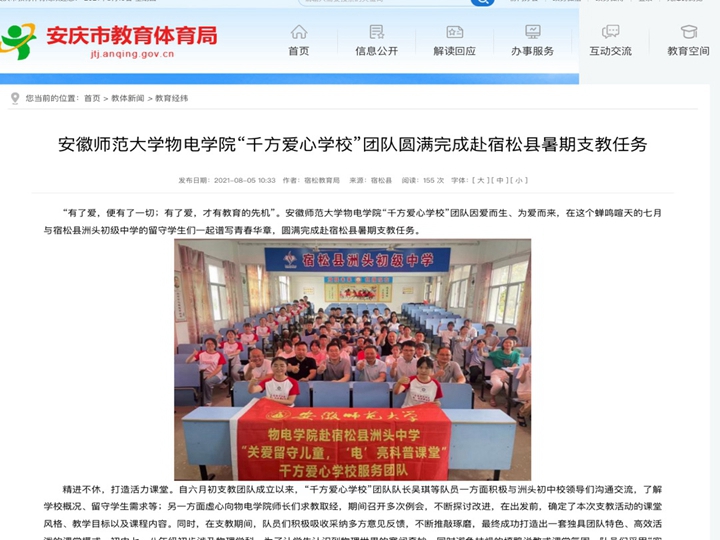 本网讯(千方爱心公司赴洲头初中支教团队)7月13日上午,m88官网m88“千方爱心公司”赴宿松县洲头初中2021年暑期社会实践活动再起航。