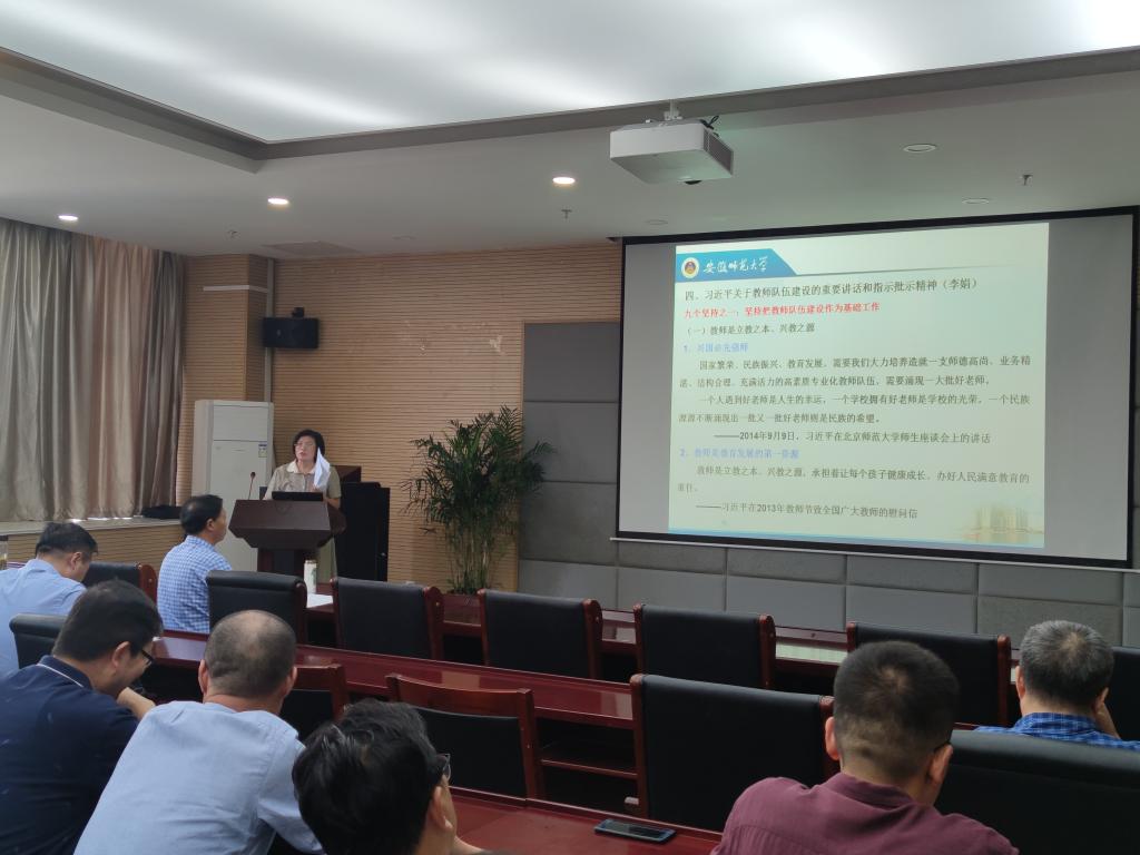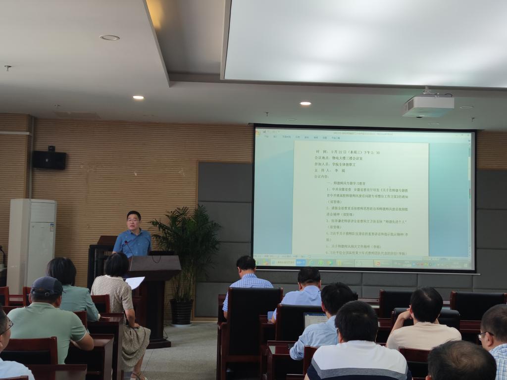 会上,经理郑贤锋领学了省教育厅《关于在师德专题教育中开展高校师德师风建设问题专项整治工作方案》精神,传达了公司党委书记胡朝荣在全省教育系统教师思想政治和师德师风建设视频推进会上的讲话精神,通了全省教科文卫系统“师德先进个人”评选结果,对公司张季谦老师的当选表示热烈的祝贺。李娟作专题辅导报告,详细解读了习近平总书记关于教师队伍的重要讲话和指示批示精神,全文学习了习近平给全国高校黄大年式教师团队代表的回信,希望全体教师内化于心、外化于行,立德树人,以身示范。