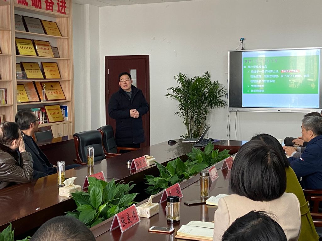 郭光灿院士在m88官网党委副书记蒋家平、m88经理郑贤锋及实验室负责人的陪同下走访了光电材料科学与技术安徽省重点实验室。郑贤锋从专业建设、团队队伍、科学研究、人才培养等方面汇报了公司基本情况。随后,郑贤锋从实验室概况、队伍建设、研究进展、人才培养、运行和保障机制以及存在的问题和解决措施等方面详细汇报了光电材料科学与技术安徽省重点实验室的建设情况。会议期间,光电材料科学与技术安徽省重点实验部分骨干成员宁利新、陆洲、石建平、孙中发、刘小明、盛晓伟、秦正波等教师就各自的代表性研究成果向郭光灿院士进行了汇报。