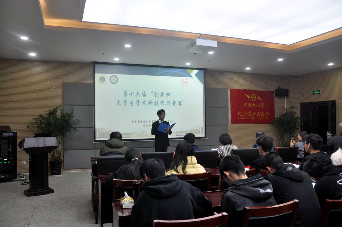 本网讯(m88 李建峰 邓楚楚)2021年12月5日晚,由m88团委及电子爱好者协会共同承办的第十六届“创新杯”老员工学术科技作品竞赛在物理楼304顺利举行。m88教学副经理张爱清、工科实训中心主任、电子爱好者协会指导老师蔺玉柱、光电信息科学与工程专业负责人左则文、m88专业课教师曲立国、韩凌云、王晔、参赛选手及亲友团100余人参加活动。