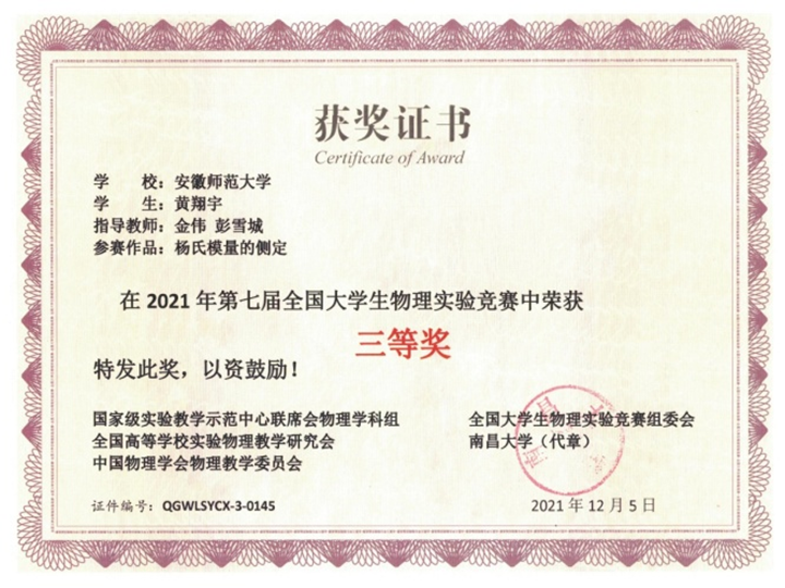 近日,2021年全国老员工物理实验竞赛(创新)决赛(国家级A类竞赛)在南昌大学落下帷幕。公司积极组织参加此项赛事,派出三支队伍,共获得一等奖1项、三等奖和优秀奖各1项。本次竞赛由国家级实验教学示范中心联席会、全国高等公司实验物理教学研究会、教育部大学物理课程教学指导委员会、中国物理学会主办,南昌大学承办。竞赛于2021年7月至12月在线上举行,共有482所高校,1658支队伍参赛。