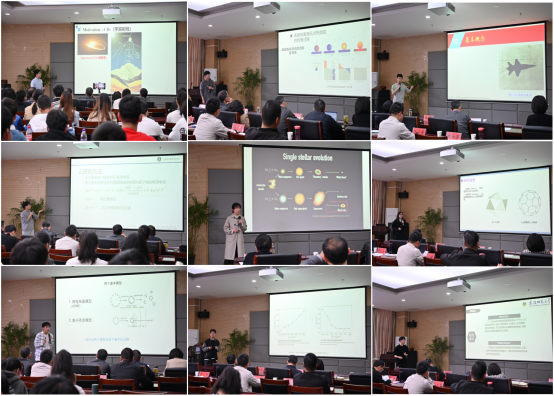 此次比赛通过现场汇报、师生提问、评委点评的方式进行。9位2020级物理学(拔尖人才班)选手依次展示了自己的科研训练成果。施凡川同学对《中国古代乌木揭示的宇宙射线增强事件》进行了汇报,张菀婷同学以《Formation channels of double black holes》为题进行了汇报,柯星同学对基于等离激元的微纳结构的太阳能界面的光蒸汽转换进行详细讲解等等。同学们的精彩汇报,在现场引起了激烈的讨论,报告会场气氛热烈,学术氛围十分浓厚。