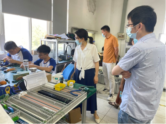 在埃泰克汽车电子有限公司,副经理张爱清参观了产品研发部、生产部和软件部,结合现场介绍,就制作、加工、技术等细节与工作人员和实践员工进行贴心交流,了解实践实况。她强调,希望同学们在社会观察、国情考察、产业体察中了解国情社情民情,感受祖国发展变化,感受各行业蓬勃发展的生动实践,真正在社会实践中受教育、长才干、树形象。