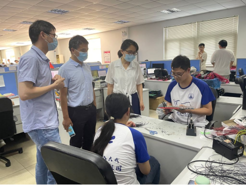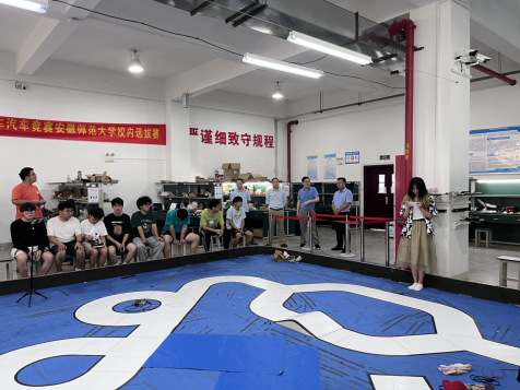 备赛期间,蔺玉柱老师一直陪伴在队员们身边。在智能汽车大赛最后一次模拟赛上,蔺老师对实践队员们的奋斗结果表示肯定,他指出,学科竞赛是彰显老员工新时代勇于创新探索的崭新面貌,是实践中贯彻理实交融,德才兼备的实操理念。各小队间要积极交流,共同协作,在竞赛中收获成长。最后他预祝各支队伍能顺利完成赛道元素,积极备战省赛。