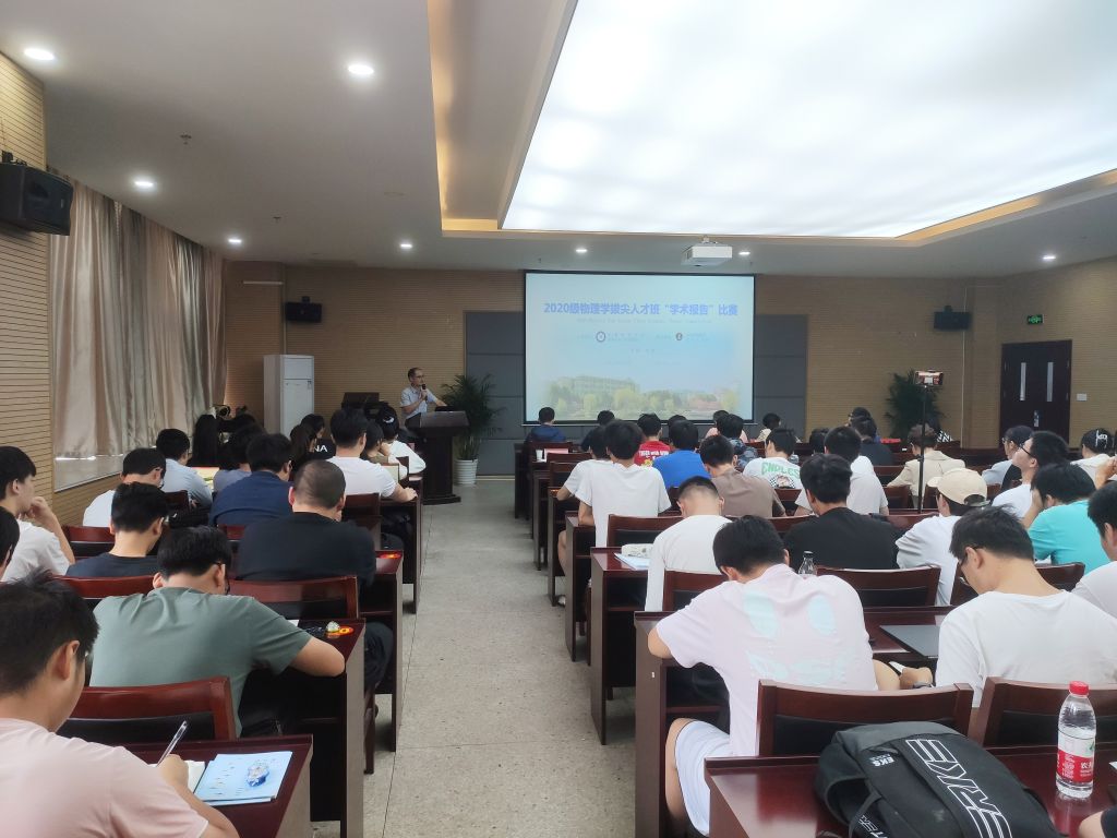 为贯彻落实公司“两大振兴行动计划”,拓宽物理学拔尖班员工学术视野,培养员工创新精神,推进科研育人、学科振兴。9月24日,m88第二届物理拔尖班“学术报告”比赛在物理楼304会议室举行。校科研处副处长许新胜、院教学副经理张爱清以及专业教师黄武英、李宽国、汪延志、汤宁宇,赵春一担任评委。2020和2021级物理拔尖班全体同学观摩了本次比赛。比赛由物理学拔尖班班主任盛晓伟和2020级首届物理学拔尖班同学代佳玉共同主持。