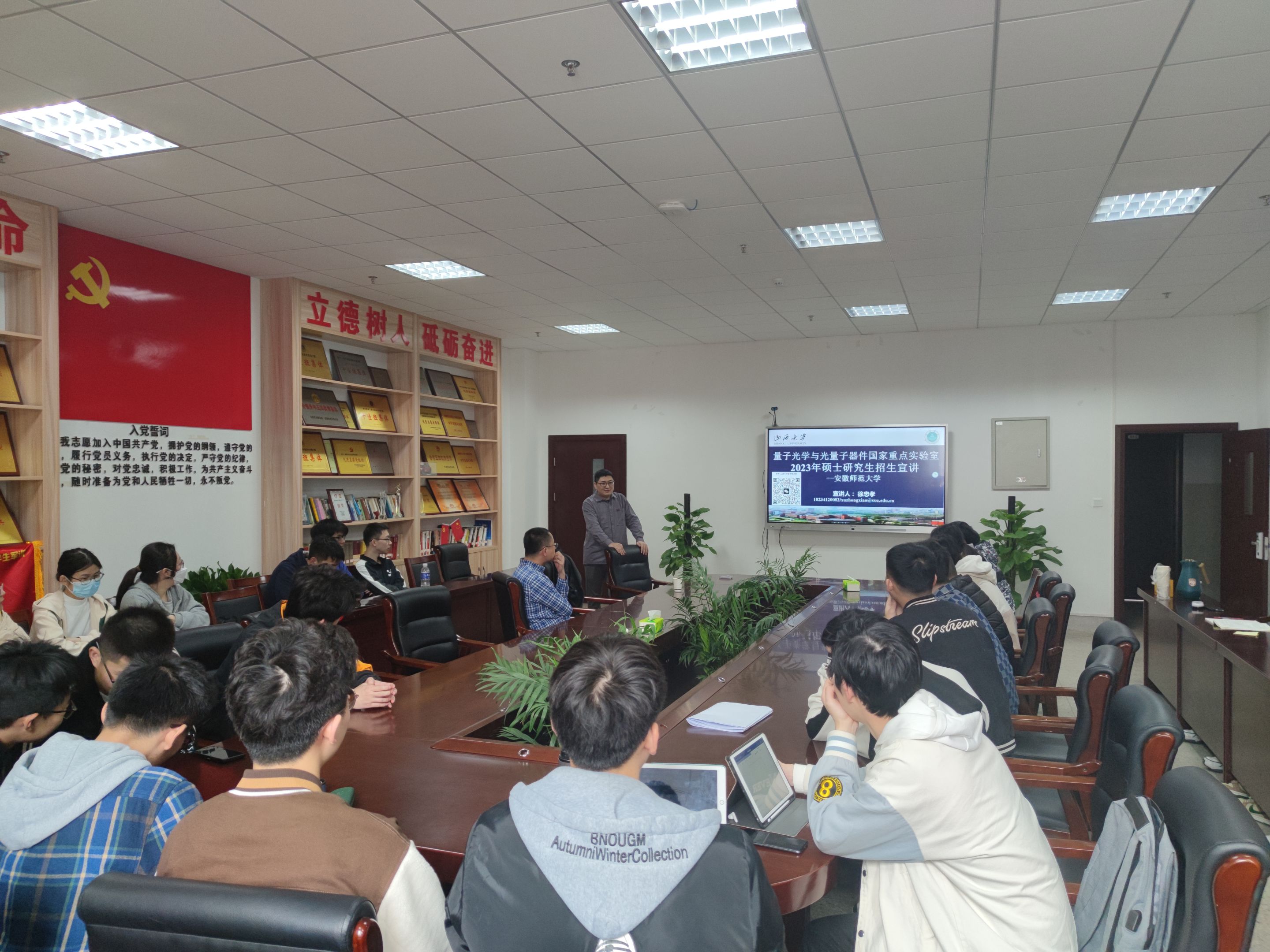 会上,徐忠孝教授围绕量子光学与光量子器件国家重点实验室的发展历程、团队人才、科研水平、研究方向等基本情况,向与会师生做详细介绍,重点介绍实验室的招生与培养方案以及毕业生发展情况,鼓励和欢迎公司学子报考、调剂山西大学相关学位点。