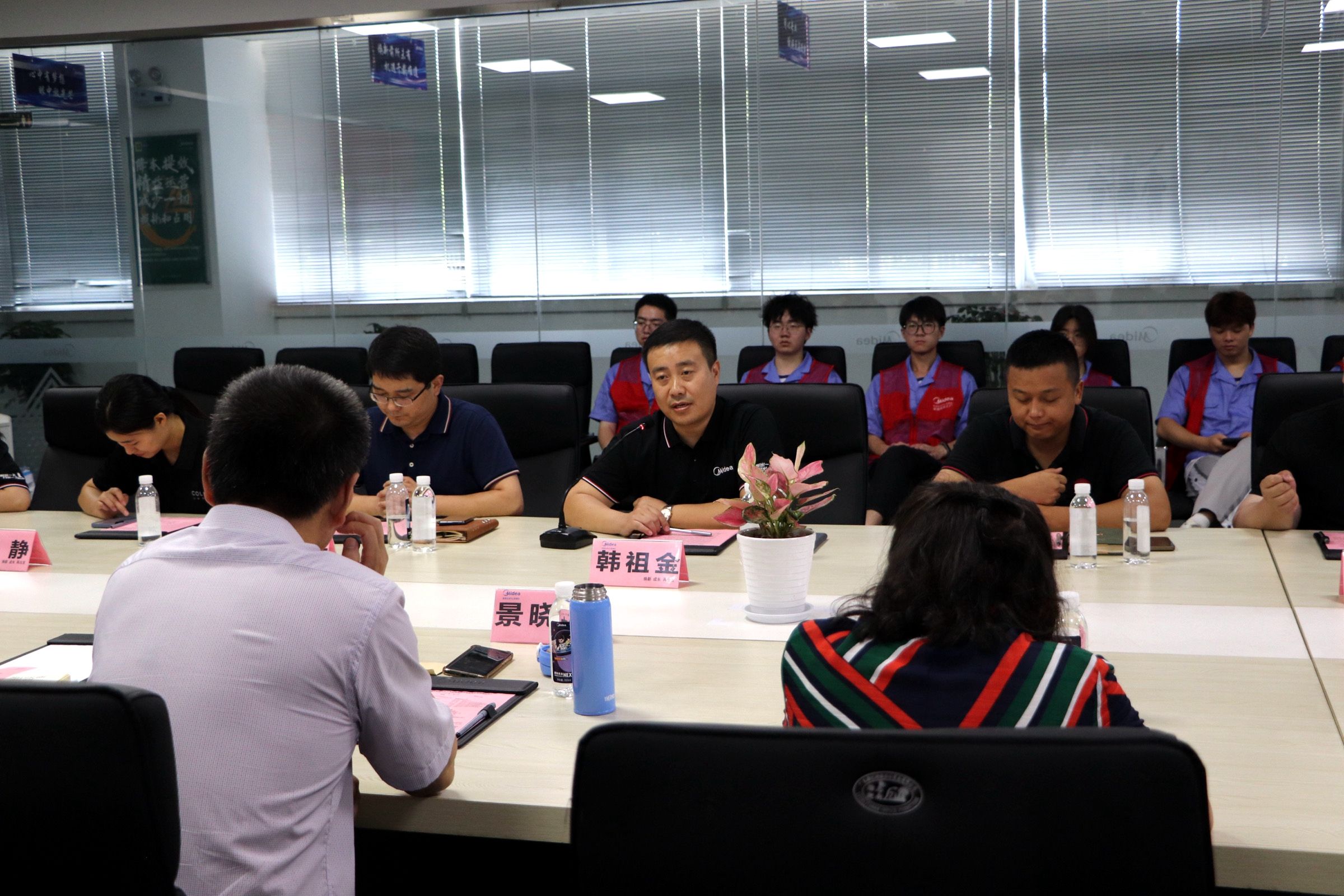 韩祖金对景晓军一行表示欢迎,希望双方在人才培养、科技攻关、技术转换等方面进一步加强合作,推动产教融合创新发展。