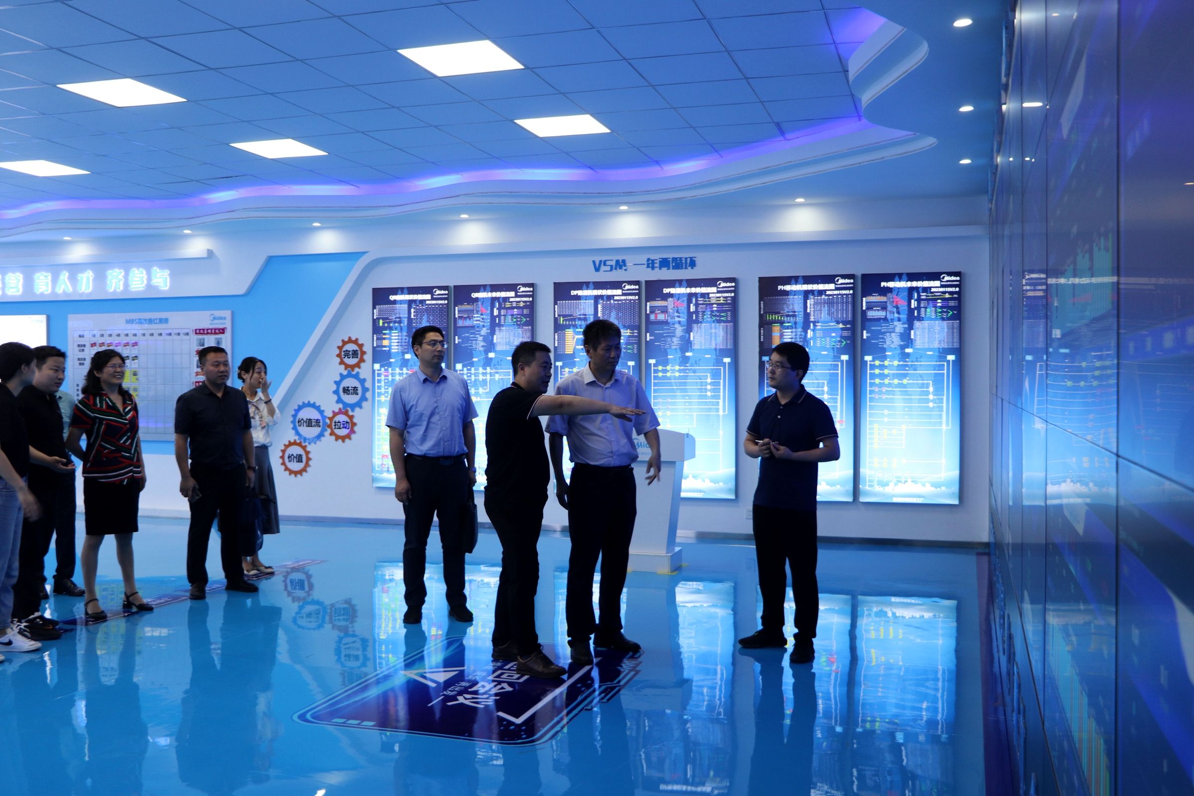 景晓军一行参观了精益道场、产品工作坊、注塑车间,现场就产品、技术、企业发展和工作人员进行了交流。参观过程中,景晓军一行听取了实践员工周改善项目汇报,汇报员工从问题发现、问题分析、问题改善方案、改善前后对比等方面介绍各自负责项目的情况。景晓军在项目点评中指出,要在细小处找抓手,提高自己理论与实践结合能力,在学习中实践,在实践中学习。参观结束后,景晓军一行与芜湖美智公司人员开展座谈,会上,芜湖美智空调设备有限公司校企合作负责人吴心雨介绍了美的企业基本情况以及美的人才培养理念。实践员工代表宋雨晨、魏薇汇报了参加专业实践的收获与体会。