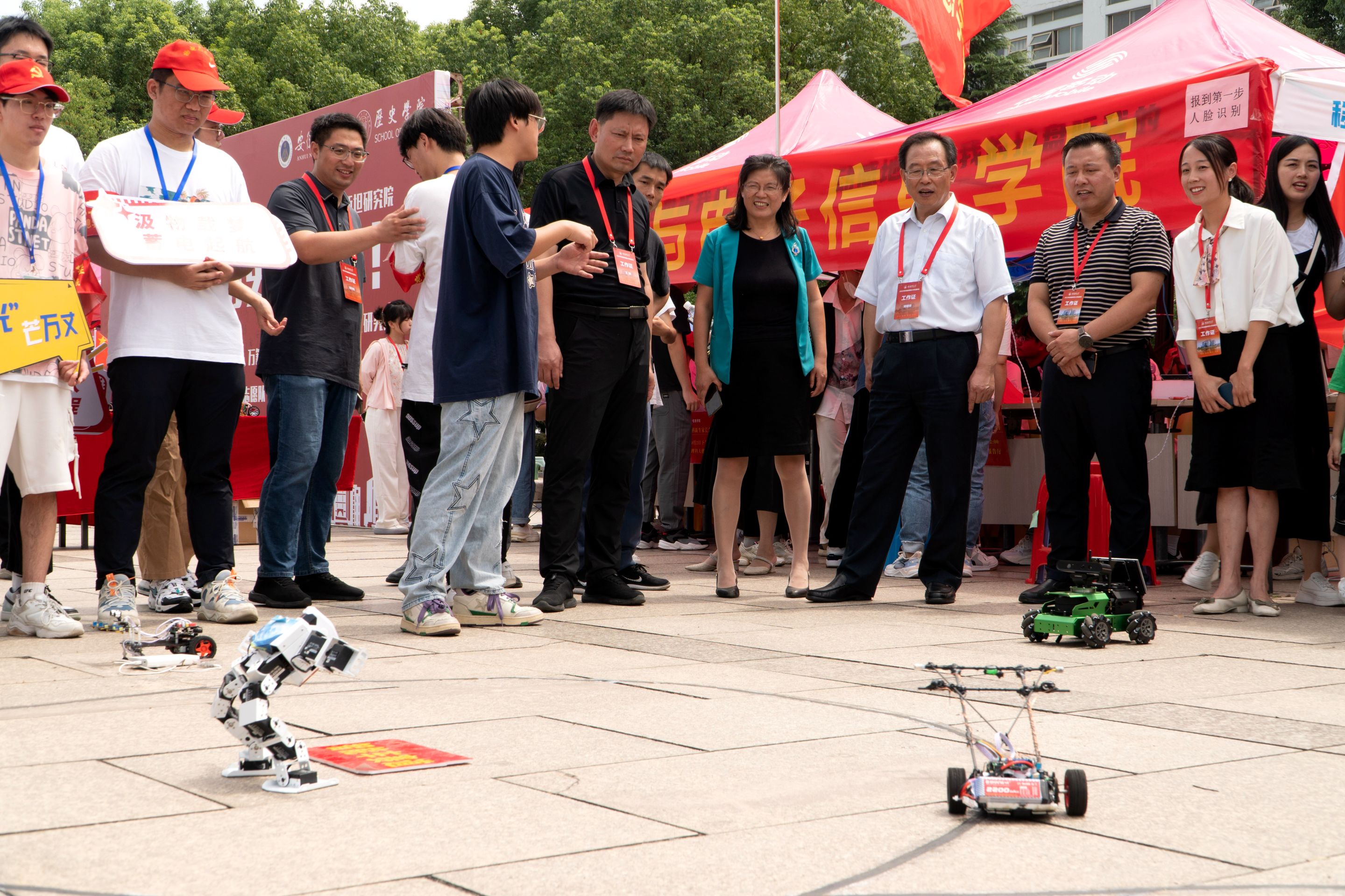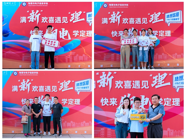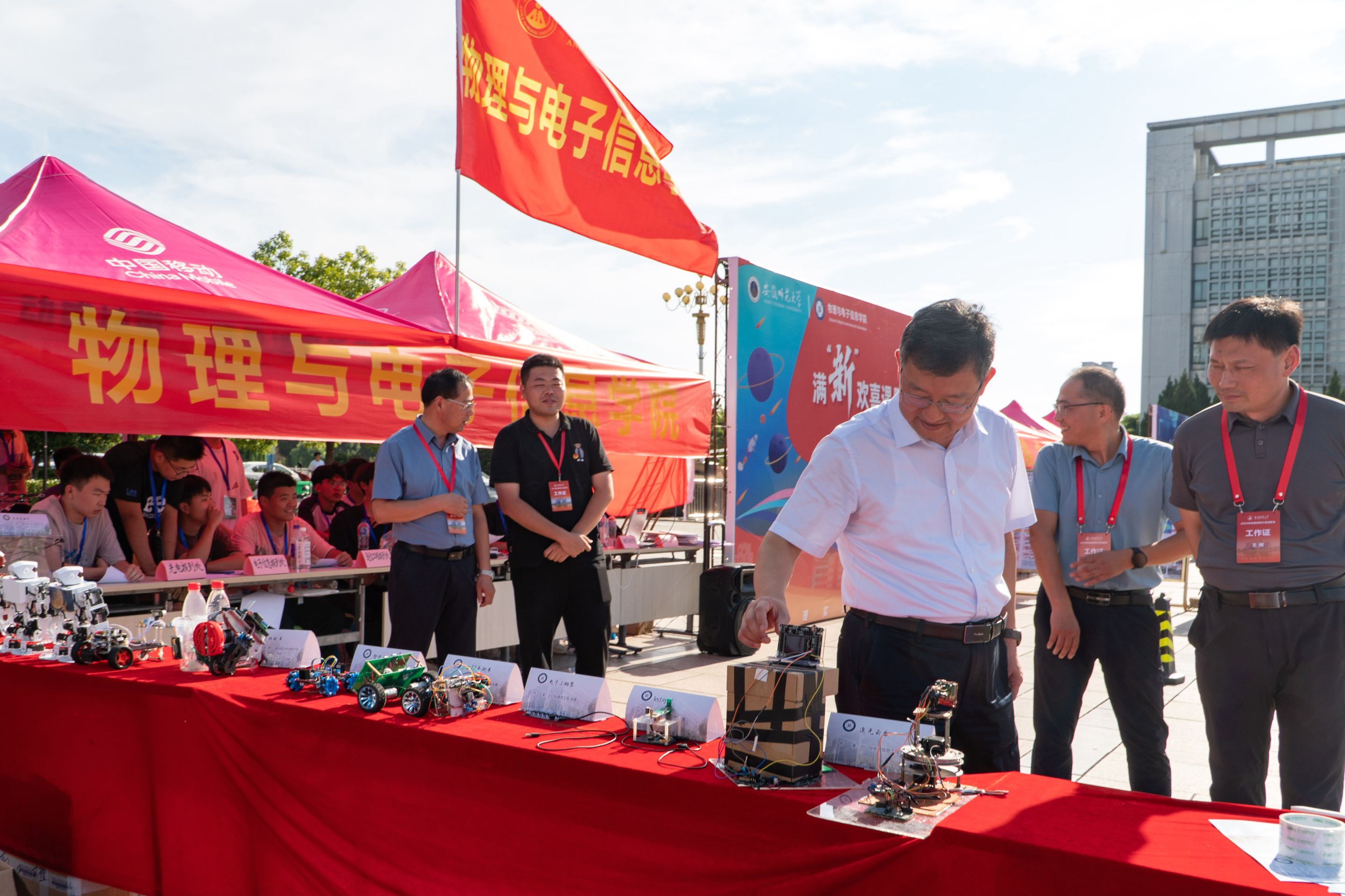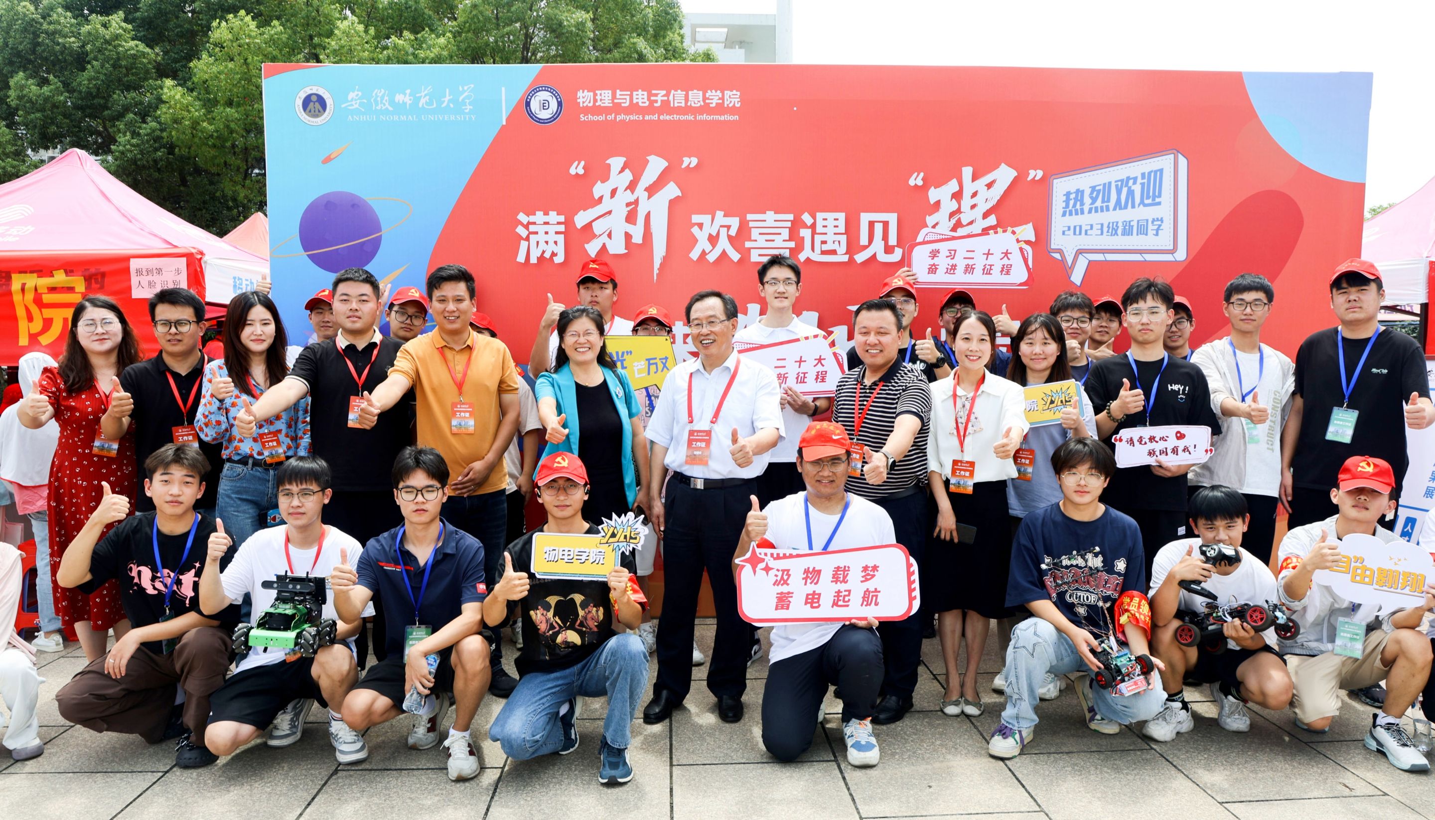 迎新现场,一列展台上展示着物电学子制作的科技作品,从工科员工研制能歌善舞的机器人、风驰电掣的智能汽车到物理师范生自制的磁感应强度探究仪、法拉第电磁感应定律演示仪、共振现象演示仪等物理教具,通过员工志愿者专业演示与讲解,让新生们在展览中感受学科魅力,对自己专业有了进一步认识。此外,公司学团组织简介、育人品牌项目、2023届考研光荣榜等宣传内容也在潜移默化中让专业思想教育加深加固。
