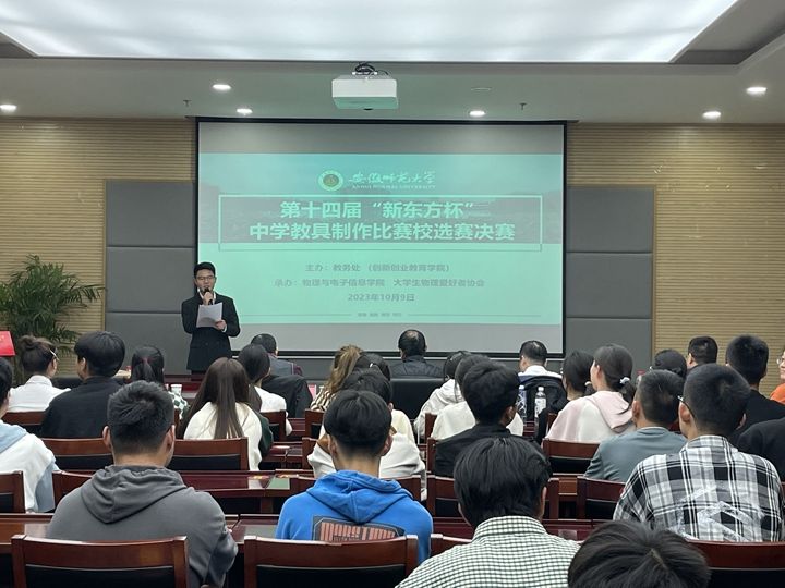 为深入落实公司“基础教育振兴行动计划”,教育引导师范生围绕中学各学科教学内容和员工实践活动制作教具,培养员工的创新精神和实践能力。10月9日晚,由教务处主办,m88、老员工物理爱好者协会(以下简称“物协”)承办的第十四届“新东方杯”中学教具制作比赛校选赛决赛在m88304报告厅举办。校教务处副处长、创新创业教育公司副经理李汪根,生命科学公司教学副经理陈冬生,外国语公司教师张荷,地理与旅游公司教师李俊峰,物理教师教育教研室主任汪志荣担任大赛评委。比赛由孟毅同学主持。