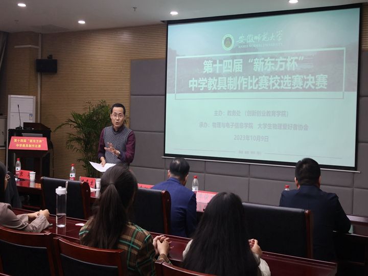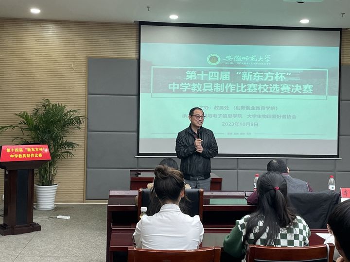 李汪根作动员讲话。他强调,公司正在大力实施“基础教育振兴”和“学科振兴”两大行动计划,着力打造金牌教案、金牌教练、金牌师范生“三金”工程和一批具有国内一流水平的精品核心课程,力争在江淮大地上精心打造一所家乡人民满意的国内一流水平师范大学,开展教具教具制作创新大赛是打造“三金”工程的应有之义。他祝贺进入决赛的20个团队,感谢老师们的悉心指导和承办单位的精心组织;希望同学们能够做到知行合一,在今后的学习和生活中能主动思考、不断创新,切实提升师范生技能。