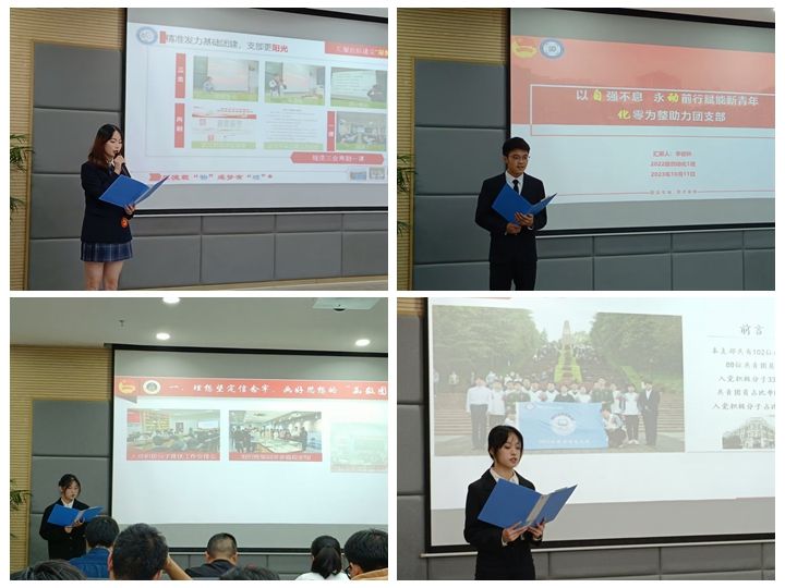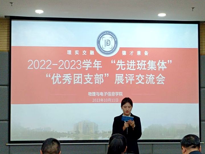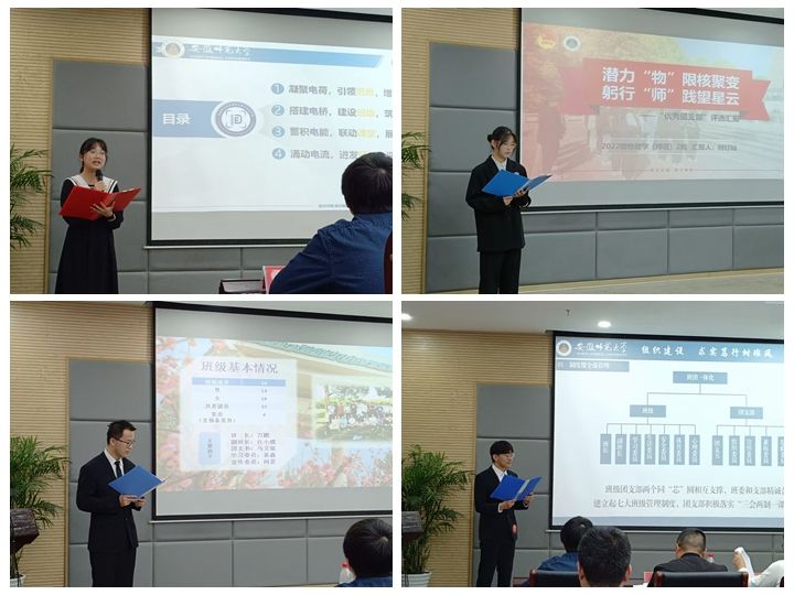 展评会上,13位申报班级、团支部员工代表依次上台汇报,利用演示文稿展示了他们在组织建设,思想引领,实践创新,学风培养等方面付出的努力及取得的成效。电子信息工程2020级1班以“激扬青春电子人,引领创“芯”未来路”为题,讲述101名电子人追求创新、力求卓越的奋斗历程;物理2021级拔尖人才班围绕“拔尖”这一主题,讲述物理学子在学业、科研、竞赛等方面的创建成果;物理学(师范)2022级2班团支部以“函数图”、“强磁场”、“向心力”、“高势能”自喻,展示凝心聚力打造的优秀团支部。各参评集体,立足公司“格物”员工社区采取的创新举措、取得的良好成果得到了评委老师和员工代表的肯定,也赢得阵阵掌声。