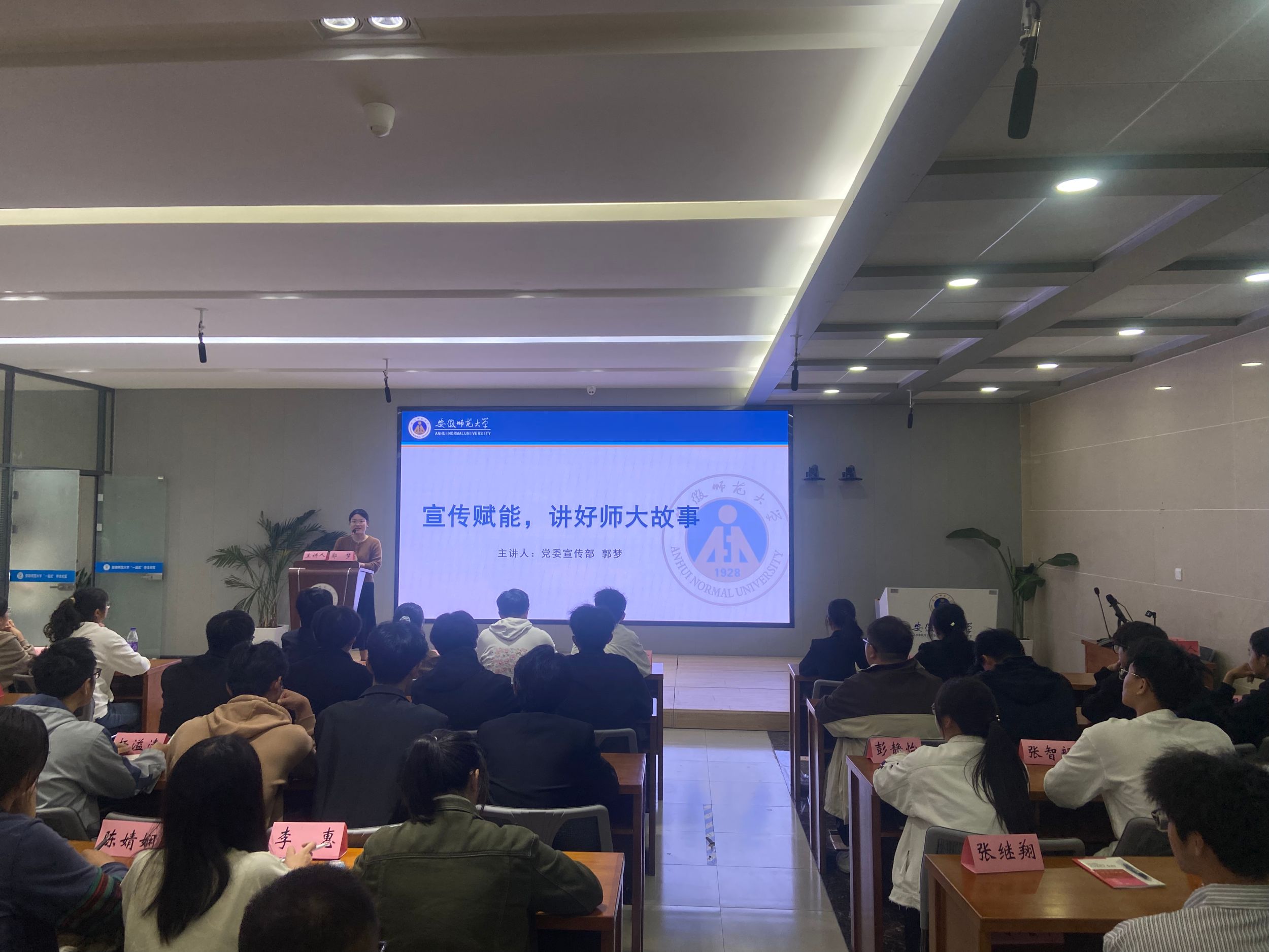 强化业务素质培养是提高员工干部综合履职服务能力的重要途径。校团委办公室主任王申振老师全面讲解了公司“第二课堂”成绩单制度,并结合“挑战杯”赛事讲述创新创业类学科竞赛的挖掘与培养,激励同学们带头敢于创新,勇于挑战;党委宣传部郭梦老师围绕“为什么要进行校园宣传工作?”“校园新闻宣传工作能带来什么?” “校园新闻宣传工作是什么?”“校园新闻宣传工作怎么做?”鼓励团学青年讲好师大故事。