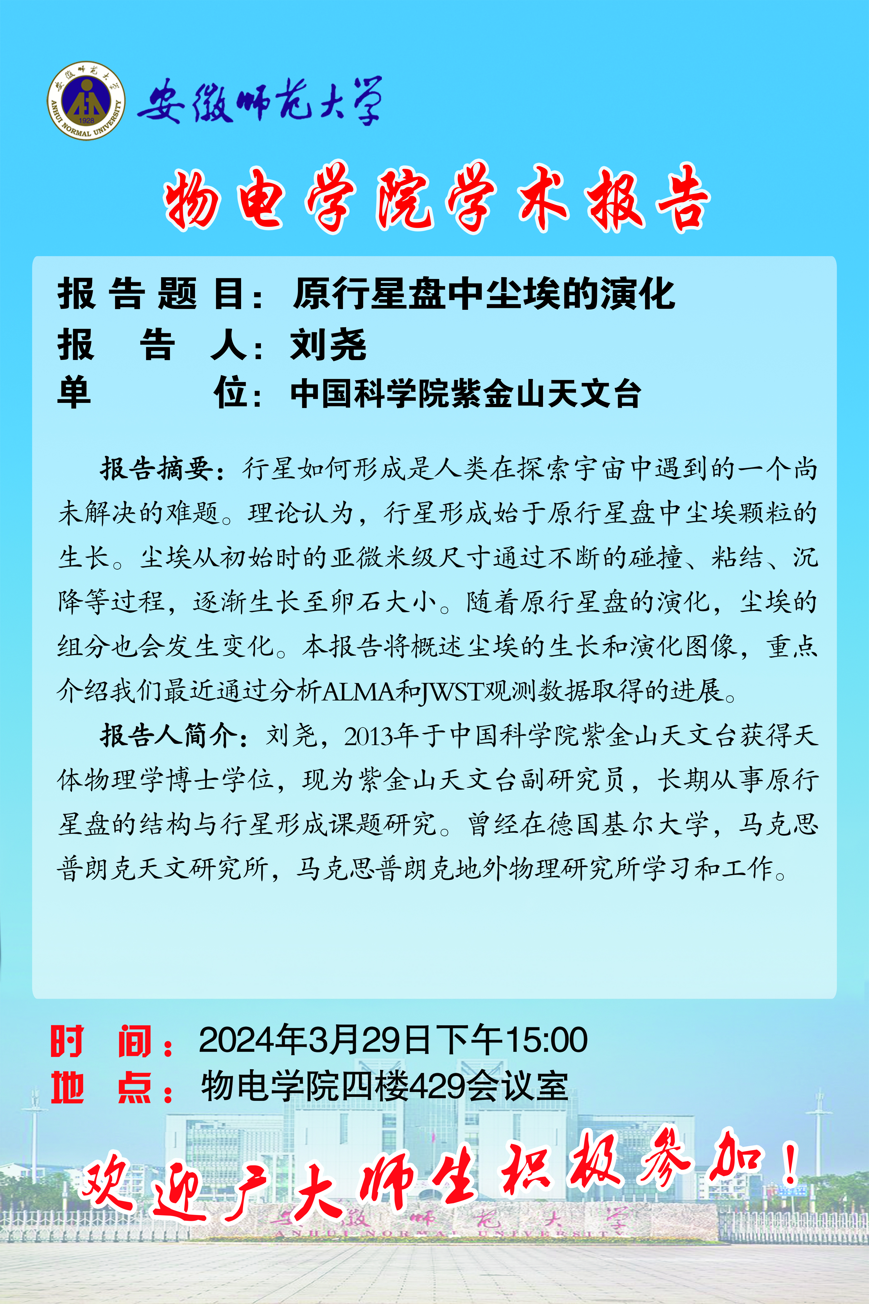 【学术预告】物电讲坛第8期:原行星盘中尘埃的演化