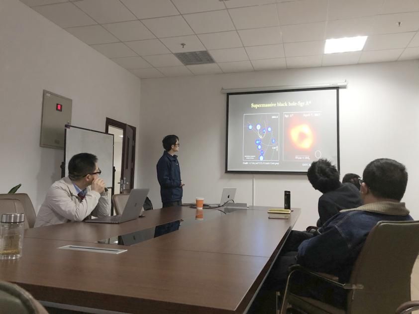 在报告会上,李亚平博士介绍了银河系Sgr A*中的超大质量黑洞发出的耀斑经常被多波长观测到,观测结果表明,耀斑与Sgr A* 周围的热点有关。尽管有许多理论上的努力,但这些耀斑的性质在很大程度上仍然不清楚。报告中,李亚平博士利用MHD模型来解释Sgr A*的多波长耀斑,并与太阳耀斑/日冕物质抛射模型进行类比。同时讨论了该模型在其它有耀斑的吸积黑洞系统中的应用。报告会结束后,与会师生和李亚平博士就相关问题展开了热烈的讨论和交流。