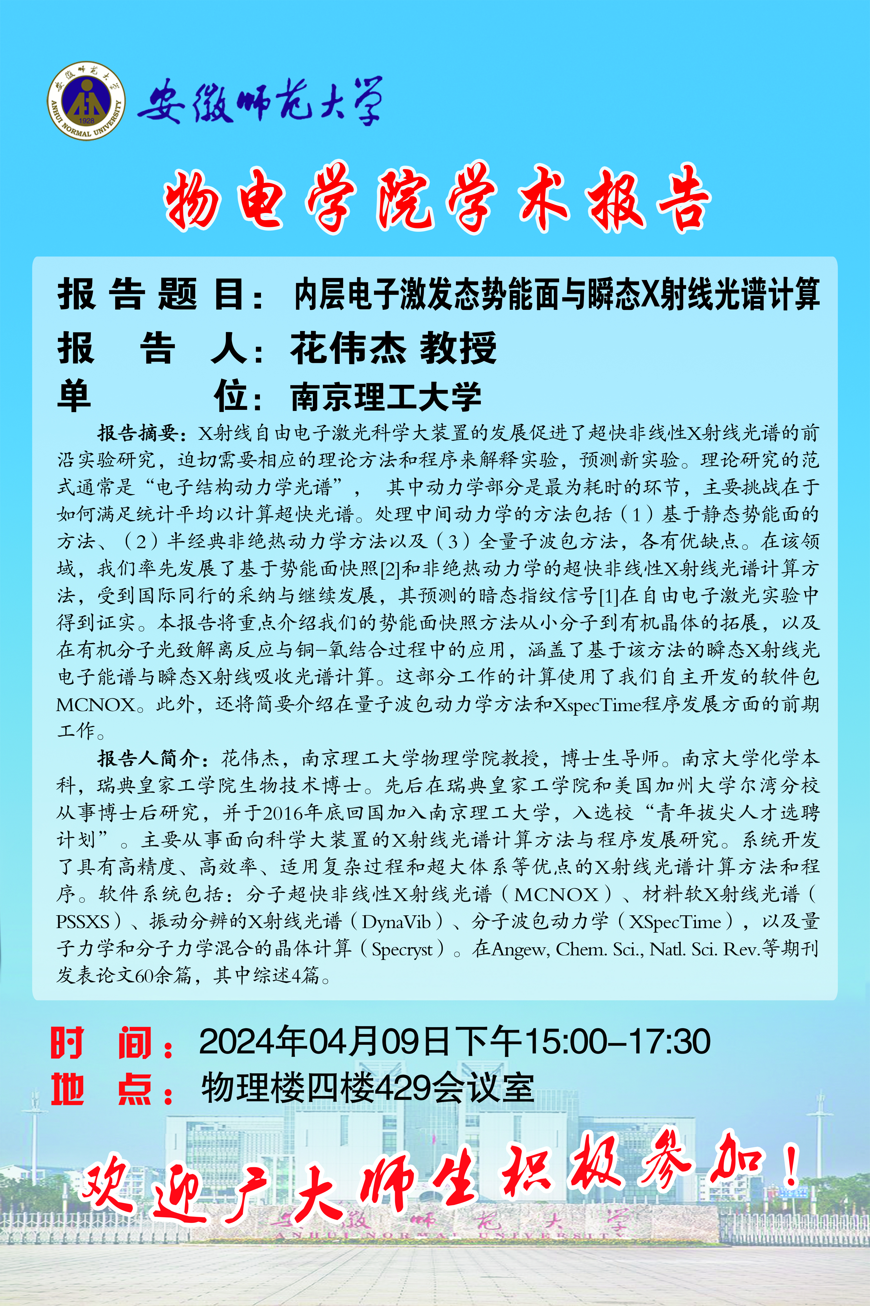地址:花津校区-安徽省芜湖市九华南路189号 邮编:241000 电话:0553--3869894