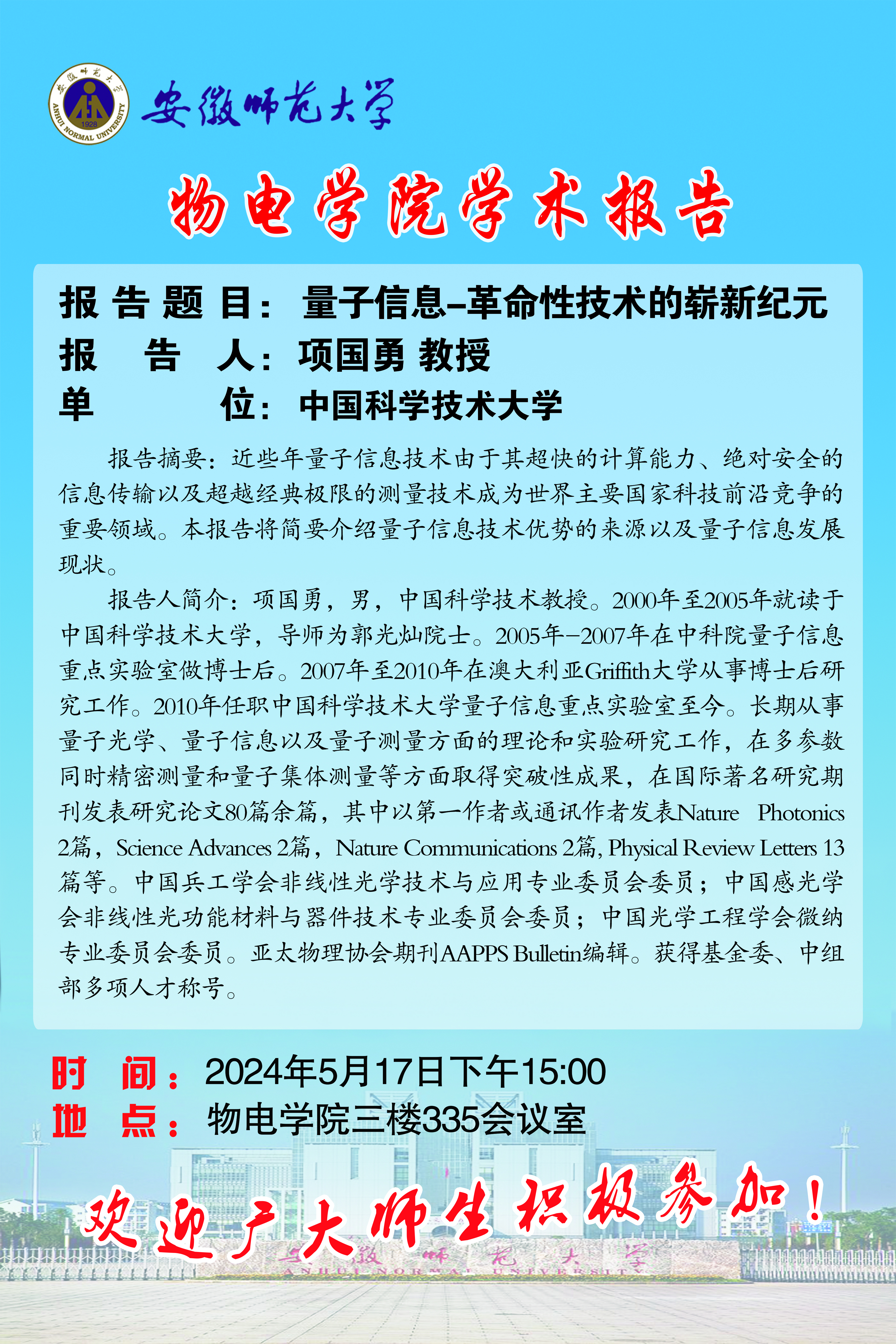 【学术预告】物电讲坛第25期:量子信息-革命性技术的崭新纪元