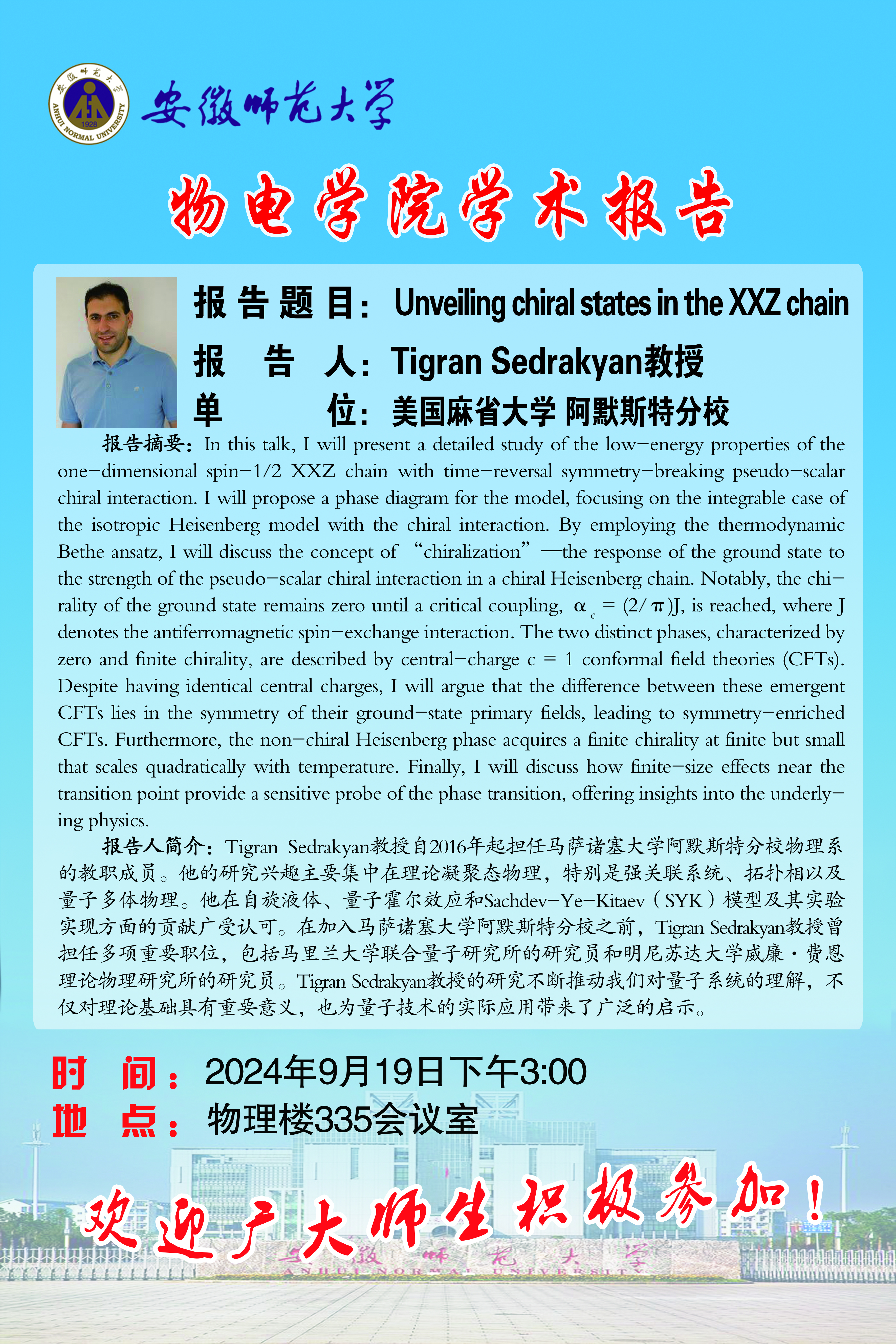地址:花津校区-安徽省芜湖市九华南路189号 邮编:241000 电话:0553--3869894