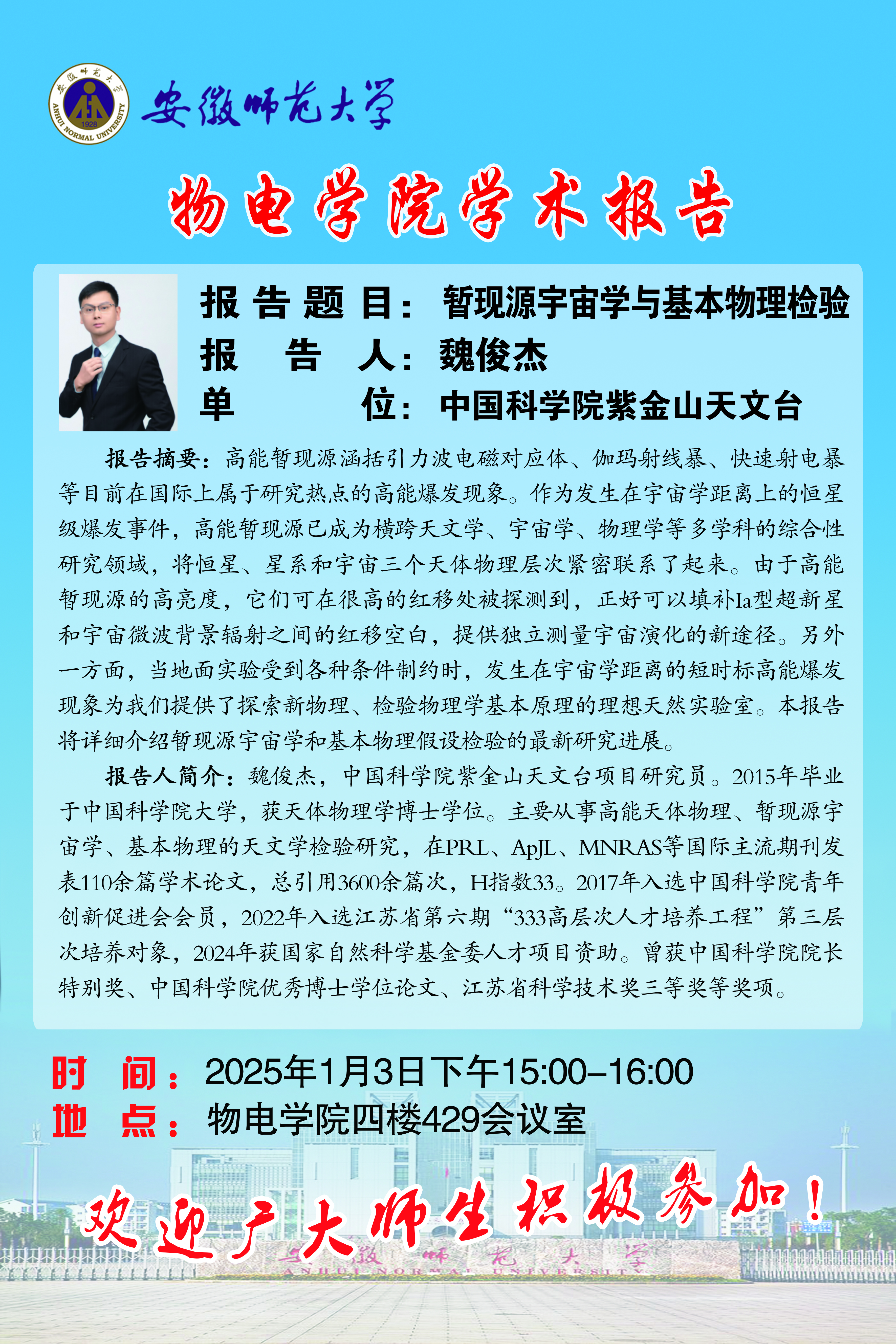 地址:花津校区-安徽省芜湖市九华南路189号 邮编:241000 电话:0553--3869894