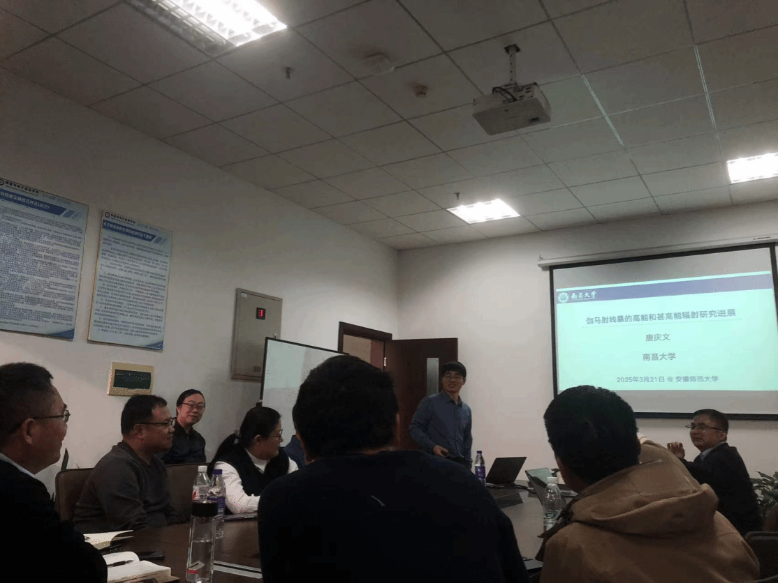 应m88邀请,南昌大学唐庆文教授于3月21日来校进行学术交流,并做了题为《伽马射线暴的高能和甚高能辐射研究进展》的学术报告。报告会在公司429会议室举行,会议由m88青年教师秦颖博士主持,m88相关师生参加了本次报告会。