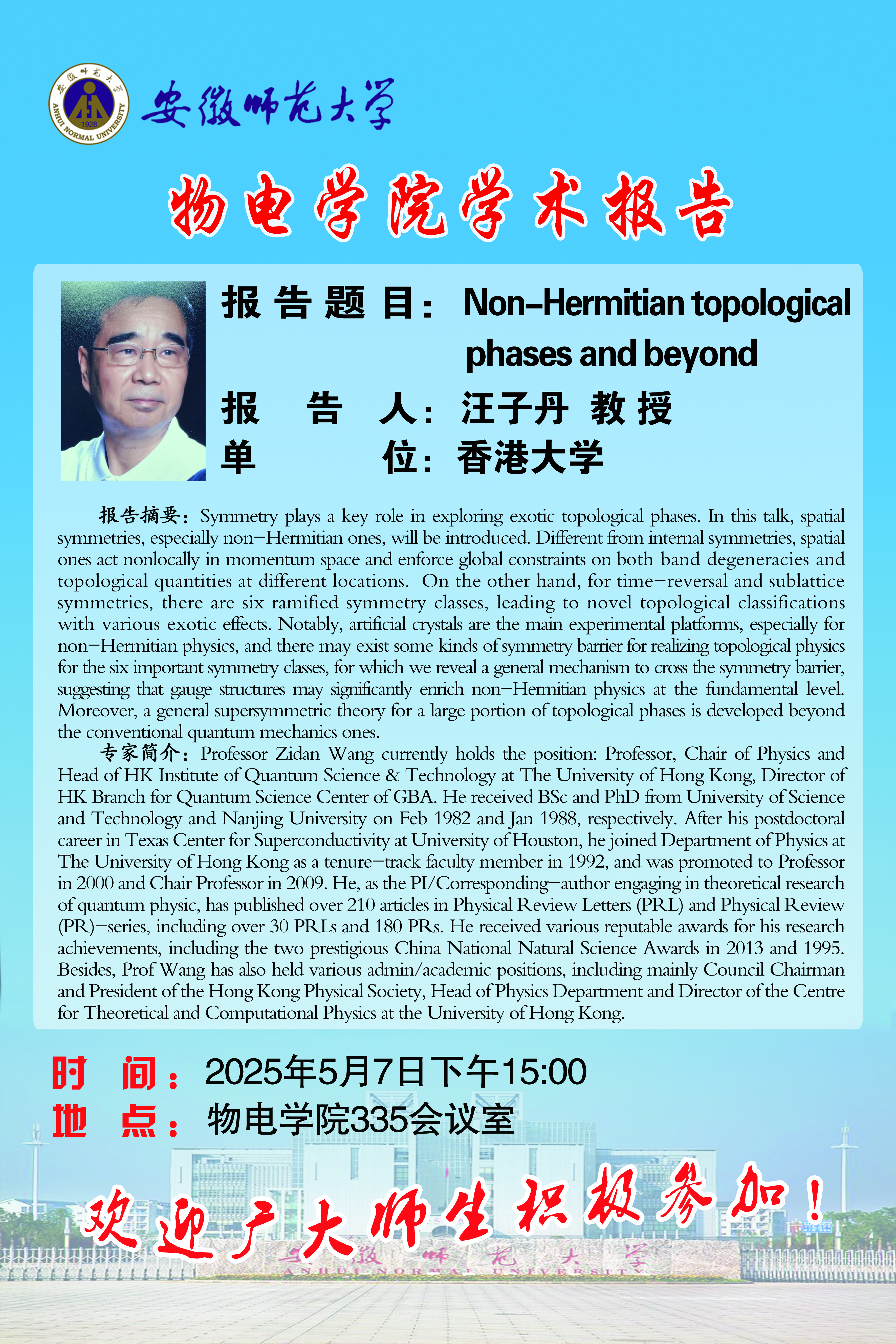 【学术预告】物电讲坛2025年第22期:Non-Hermitian topological phases and beyond