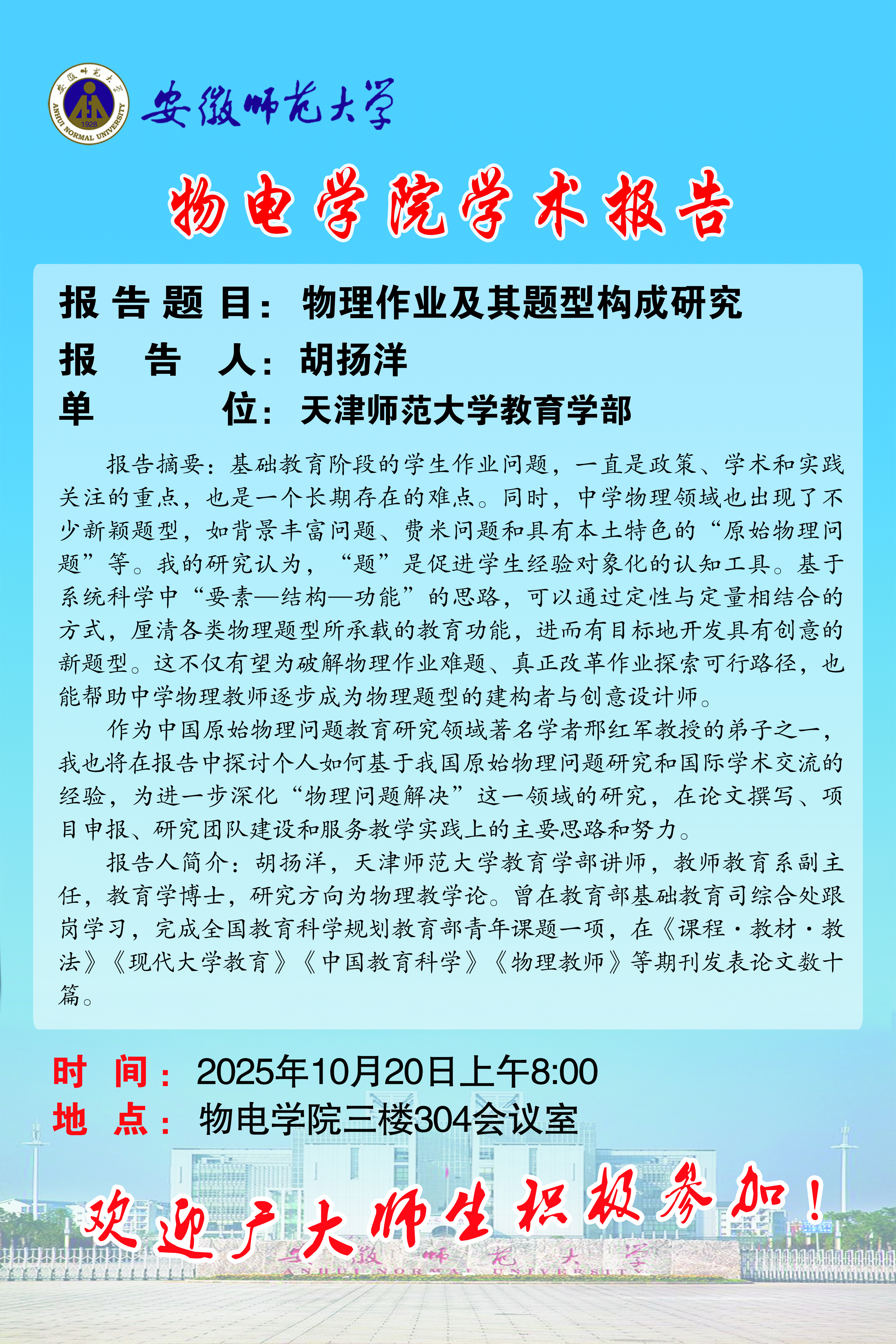 【学术预告】物电讲坛2025年第37期:物理作业及其题型构成研究