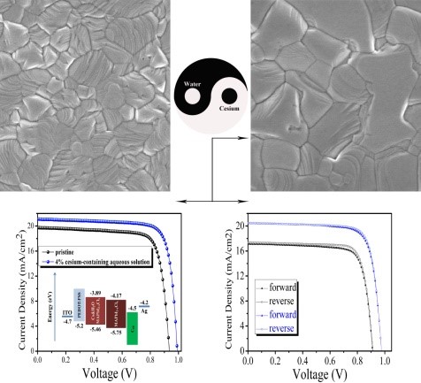 (本网讯 m88)m88崔光磊课题组近年来围绕新型钙钛矿太阳电池结构与特性开展了系列研究工作。近日,该课题组在期刊《Solar RRL》上发表了有关反式结构太阳电池水与铯协同掺杂调控微结构的研究成果。
