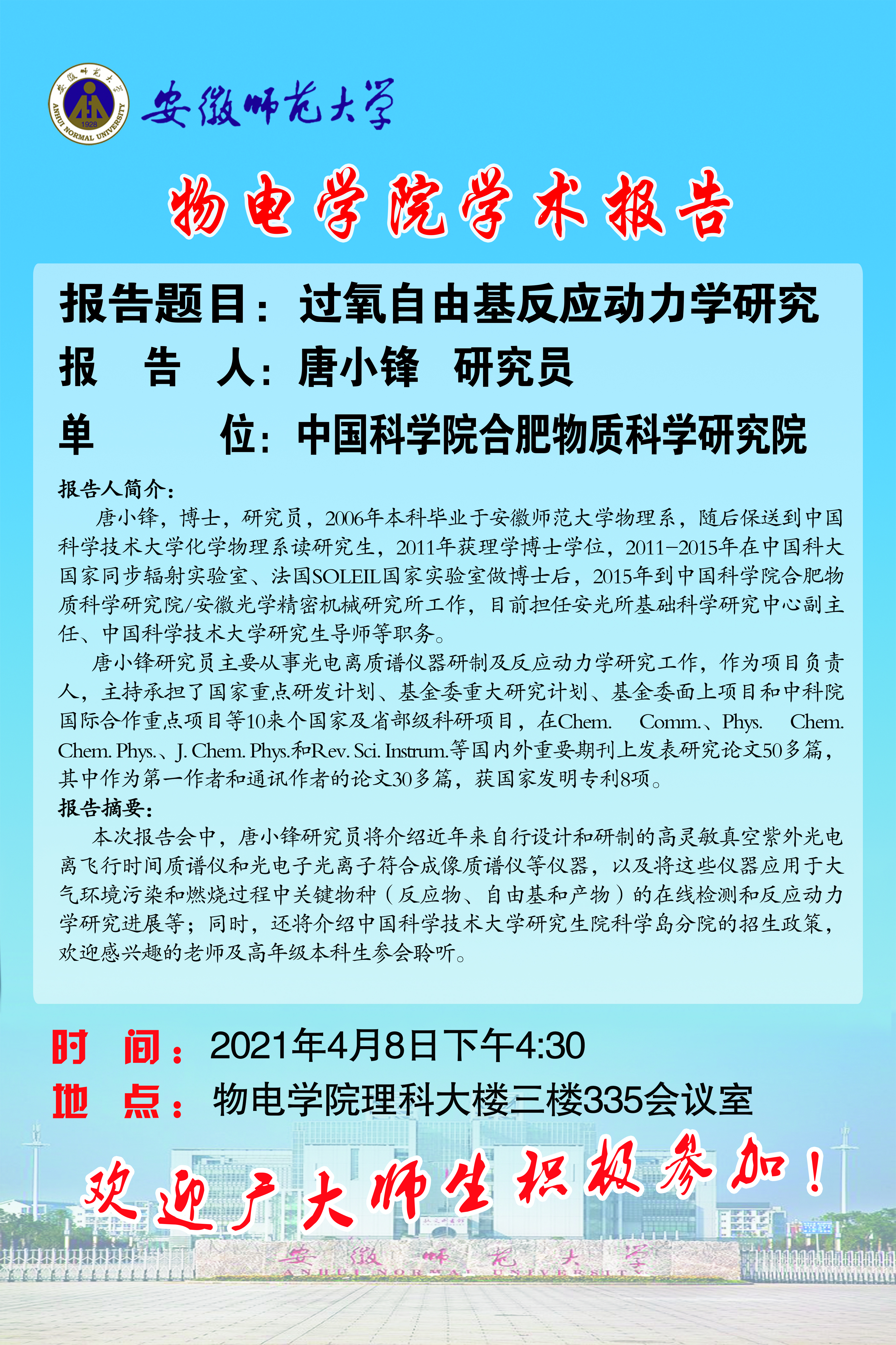 地址:花津校区-安徽省芜湖市九华南路189号 邮编:241000 电话:0553--3869894