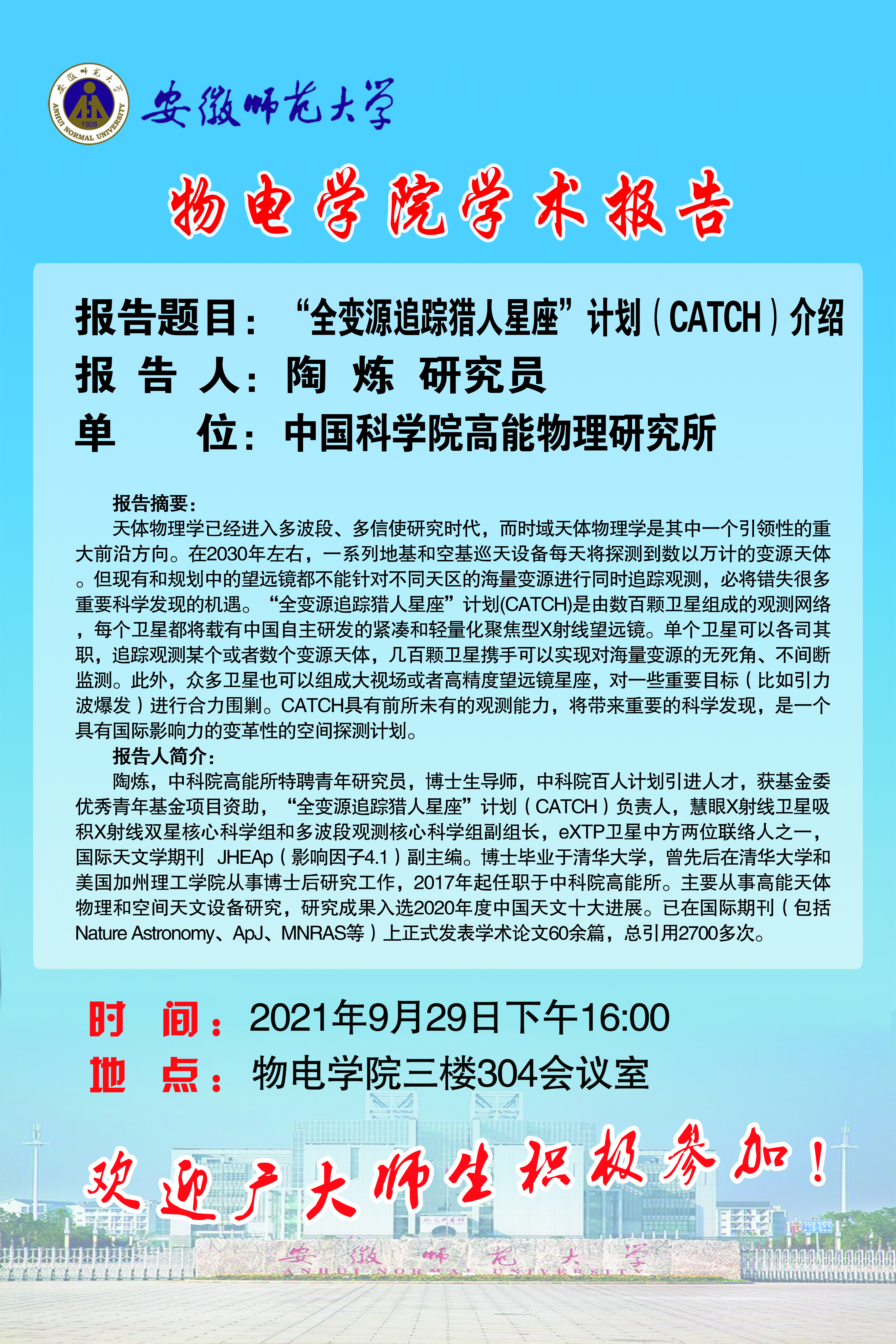 地址:花津校区-安徽省芜湖市九华南路189号 邮编:241000 电话:0553--3869894