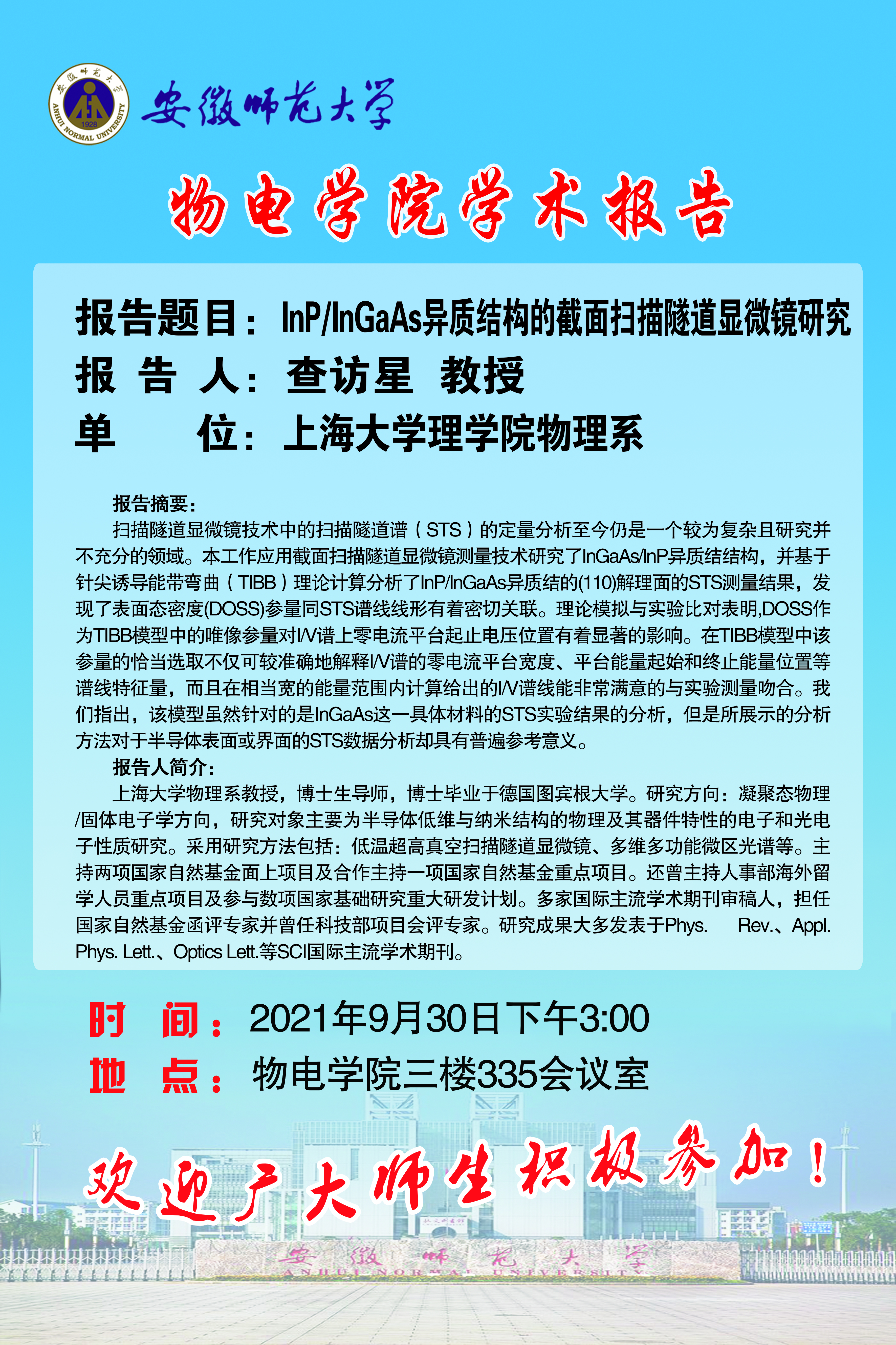 地址:花津校区-安徽省芜湖市九华南路189号 邮编:241000 电话:0553--3869894