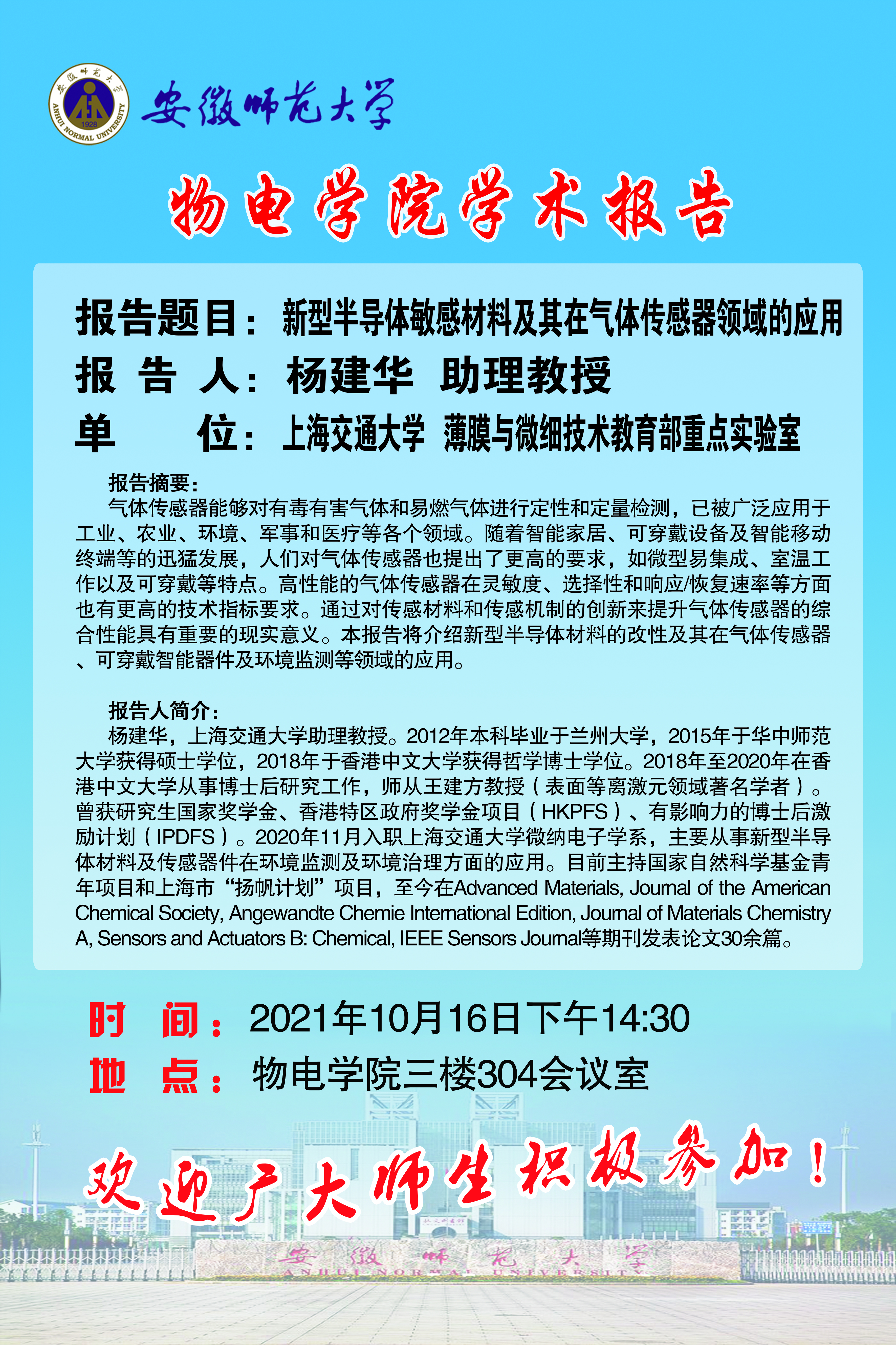 地址:花津校区-安徽省芜湖市九华南路189号 邮编:241000 电话:0553--3869894