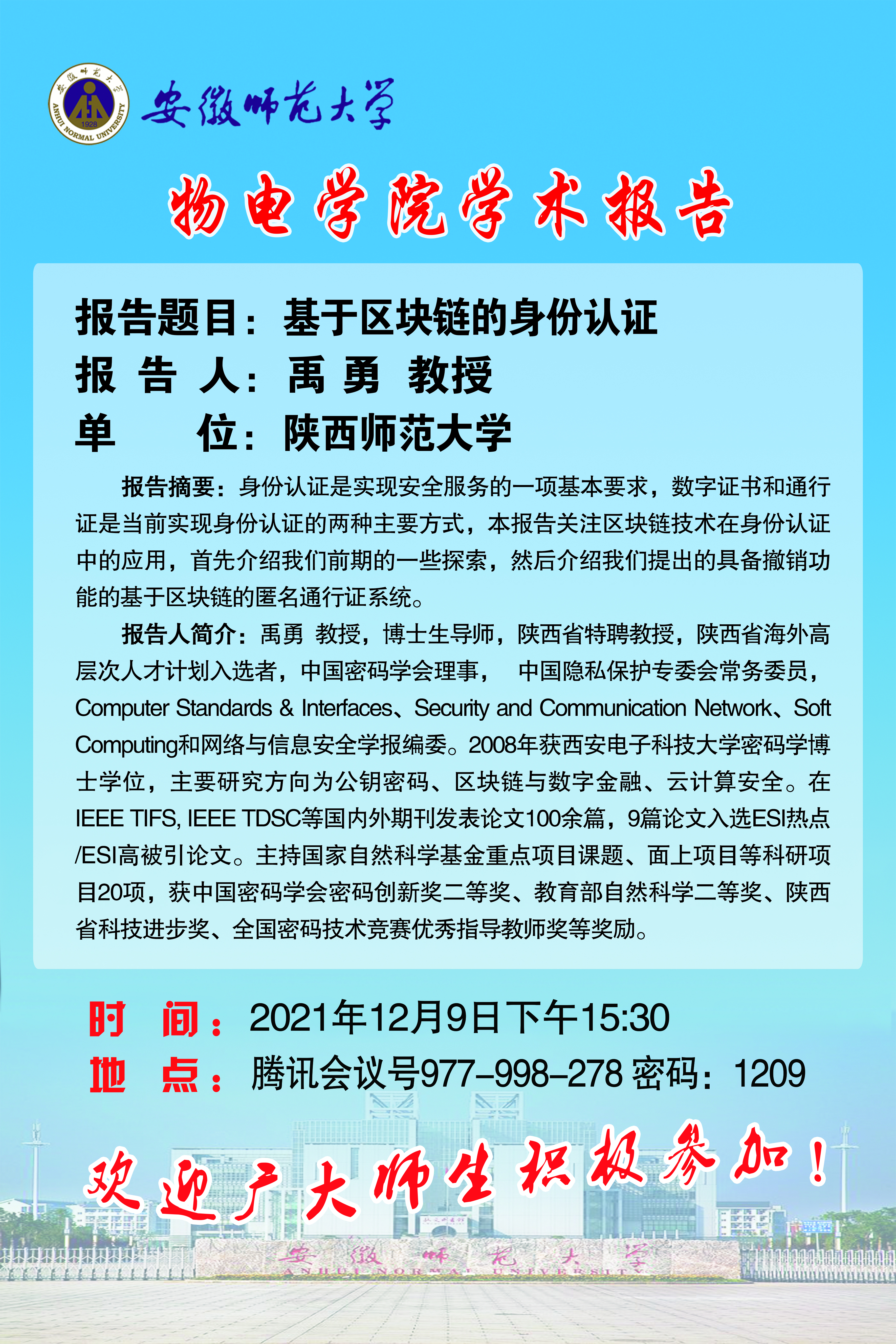 地址:花津校区-安徽省芜湖市九华南路189号 邮编:241000 电话:0553--3869894