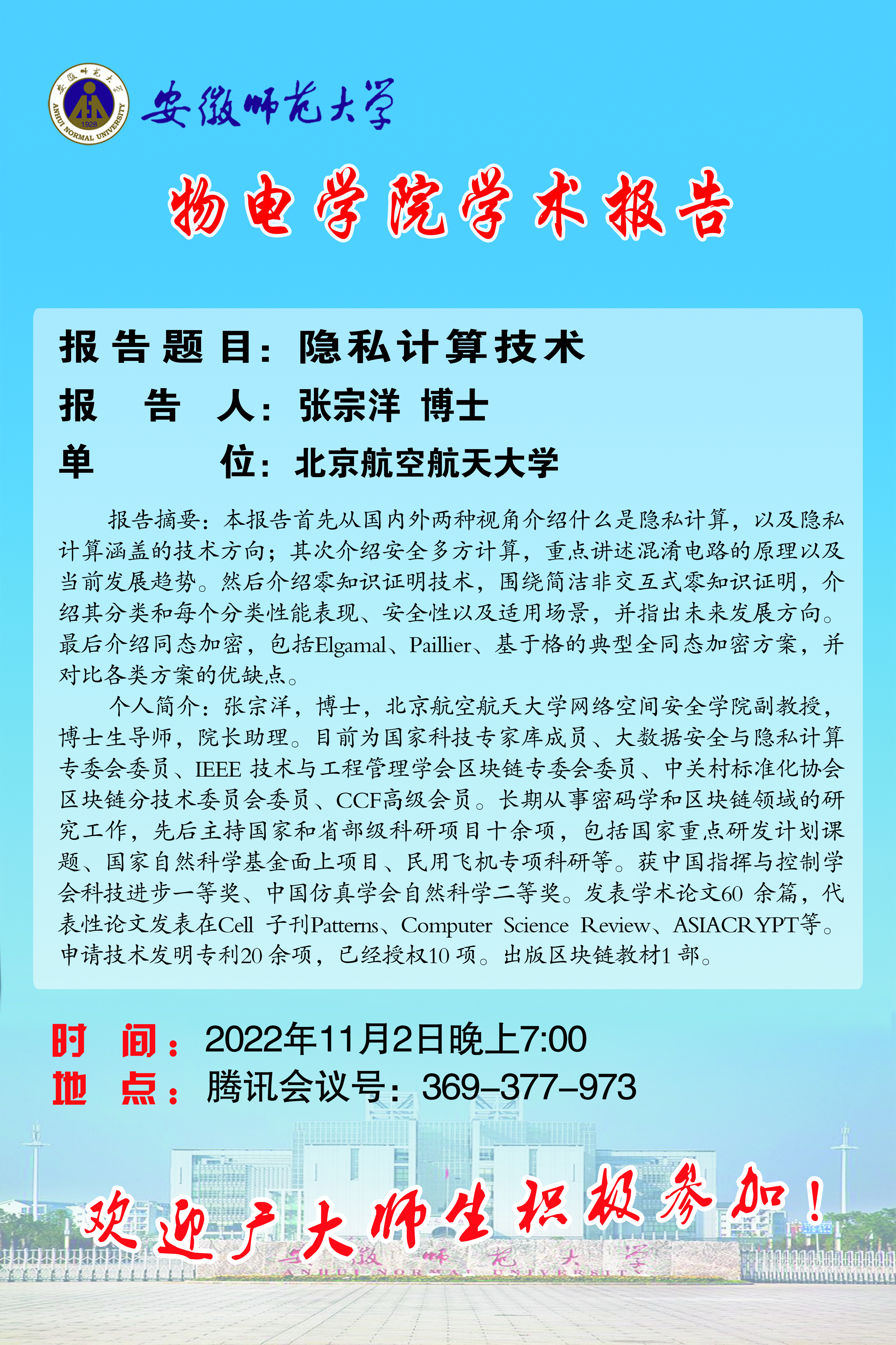地址:花津校区-安徽省芜湖市九华南路189号 邮编:241000 电话:0553--3869894
