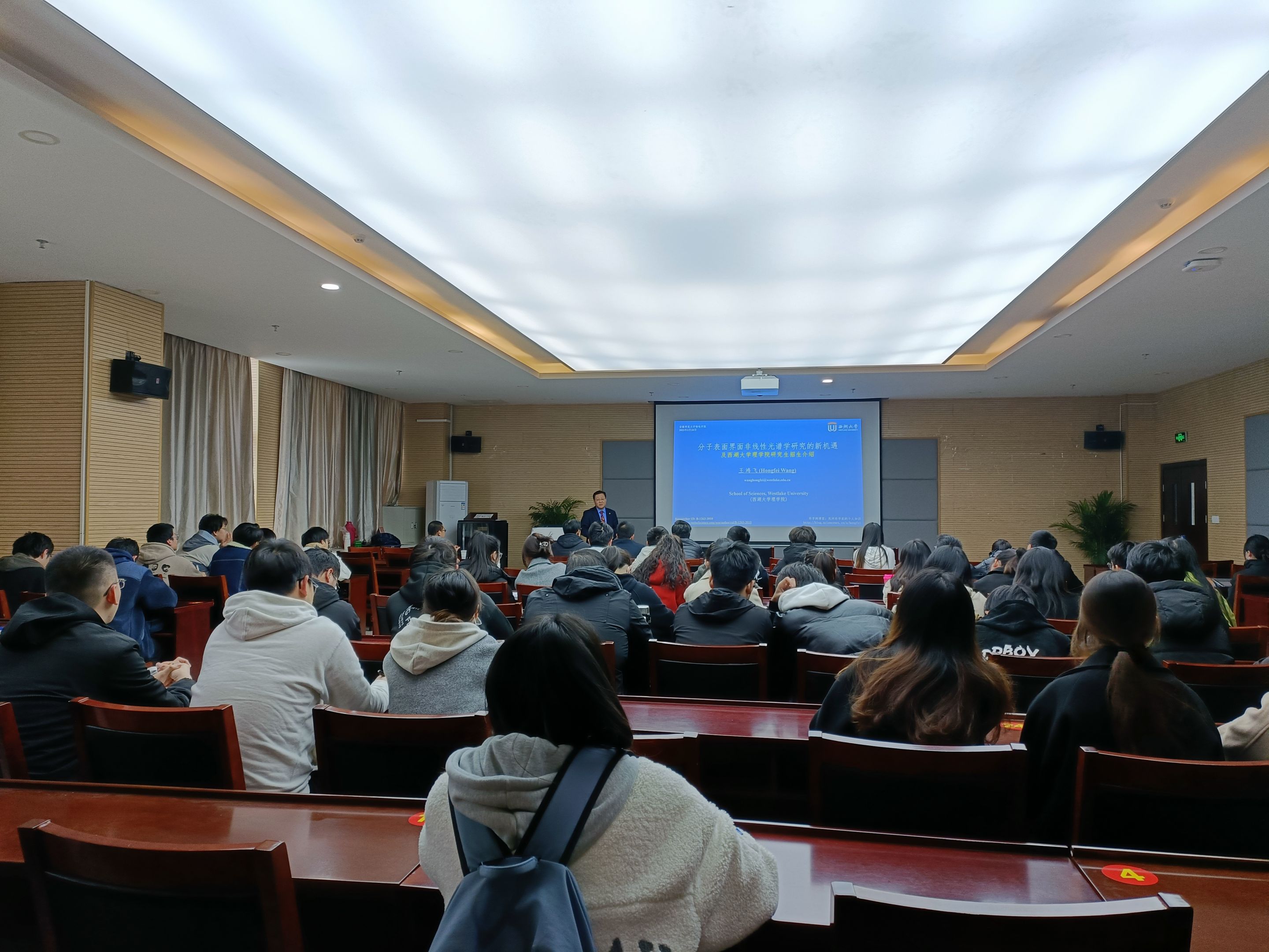 本网讯(m88)应m88邀请,西湖大学王鸿飞教授于3月24日来校进行学术交流,并做了题为《分子表面和界面非线性光谱学研究的新机遇》的学术报告。报告会在公司304会议室举行,会议由m88陆洲教授主持,m88相关师生参加了本次报告会。
