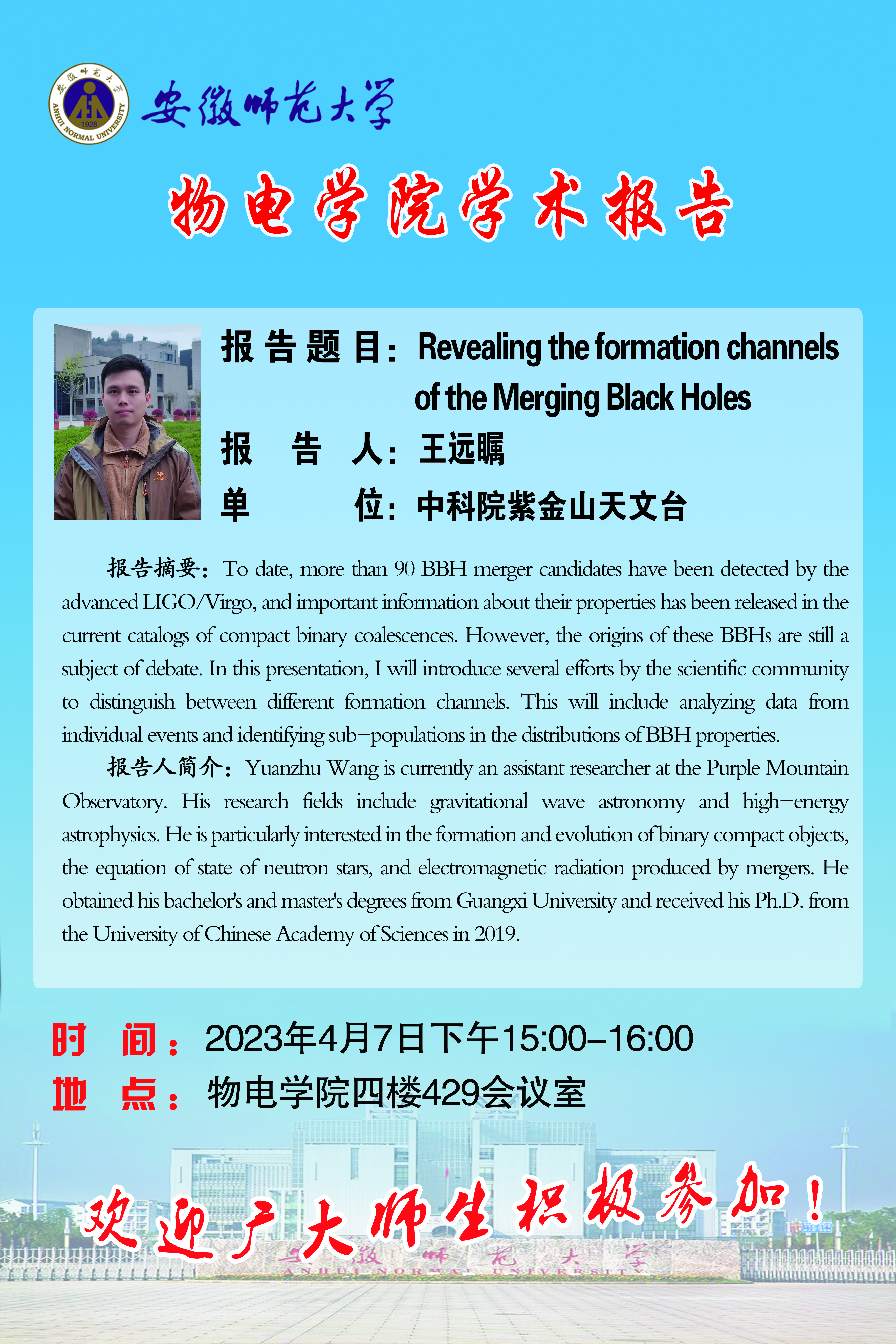 【学术预告·物电讲坛】王远瞩:Revealing the formation channels of the Merging Black Holes