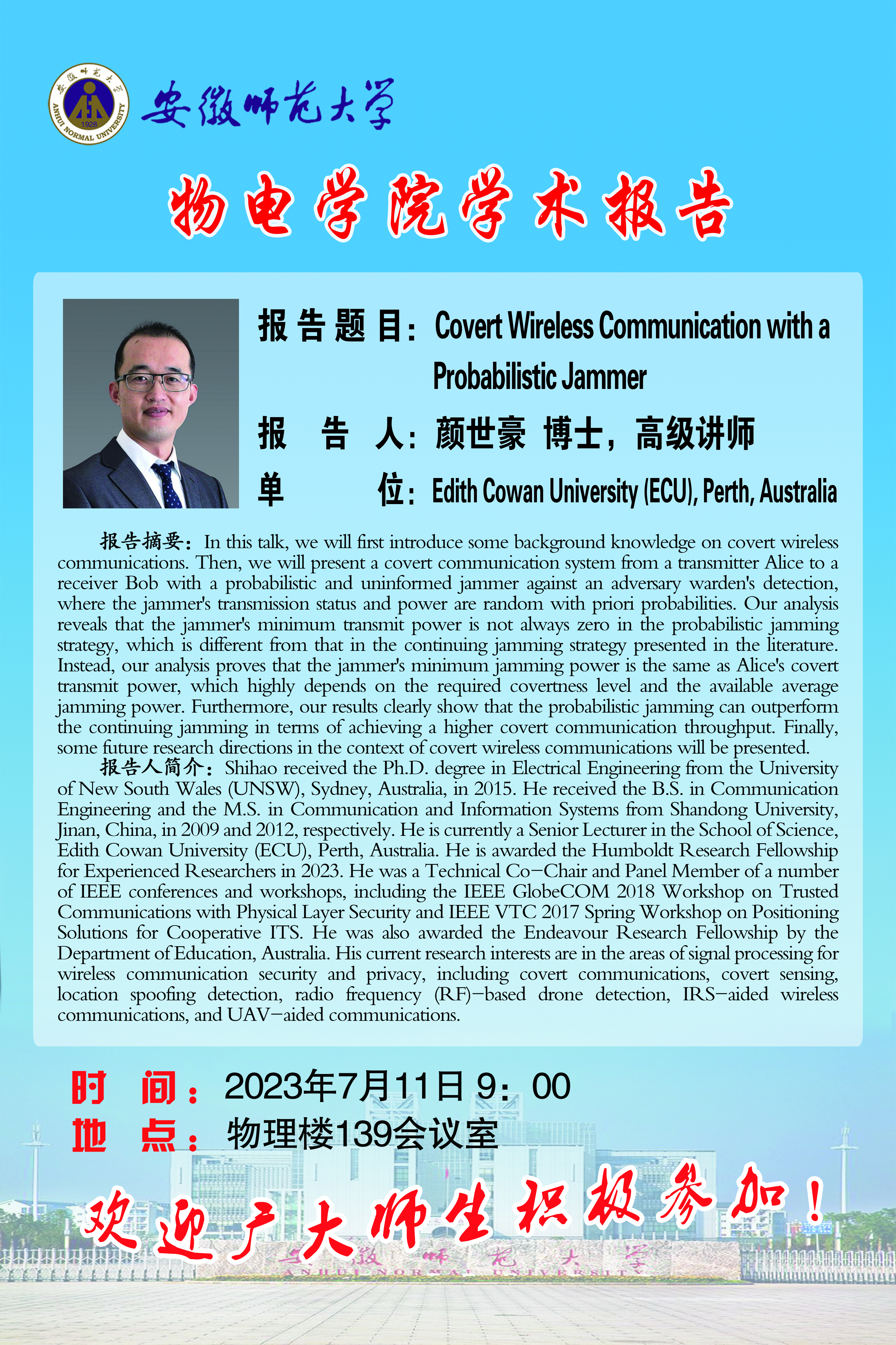 地址:花津校区-安徽省芜湖市九华南路189号 邮编:241000 电话:0553--3869894