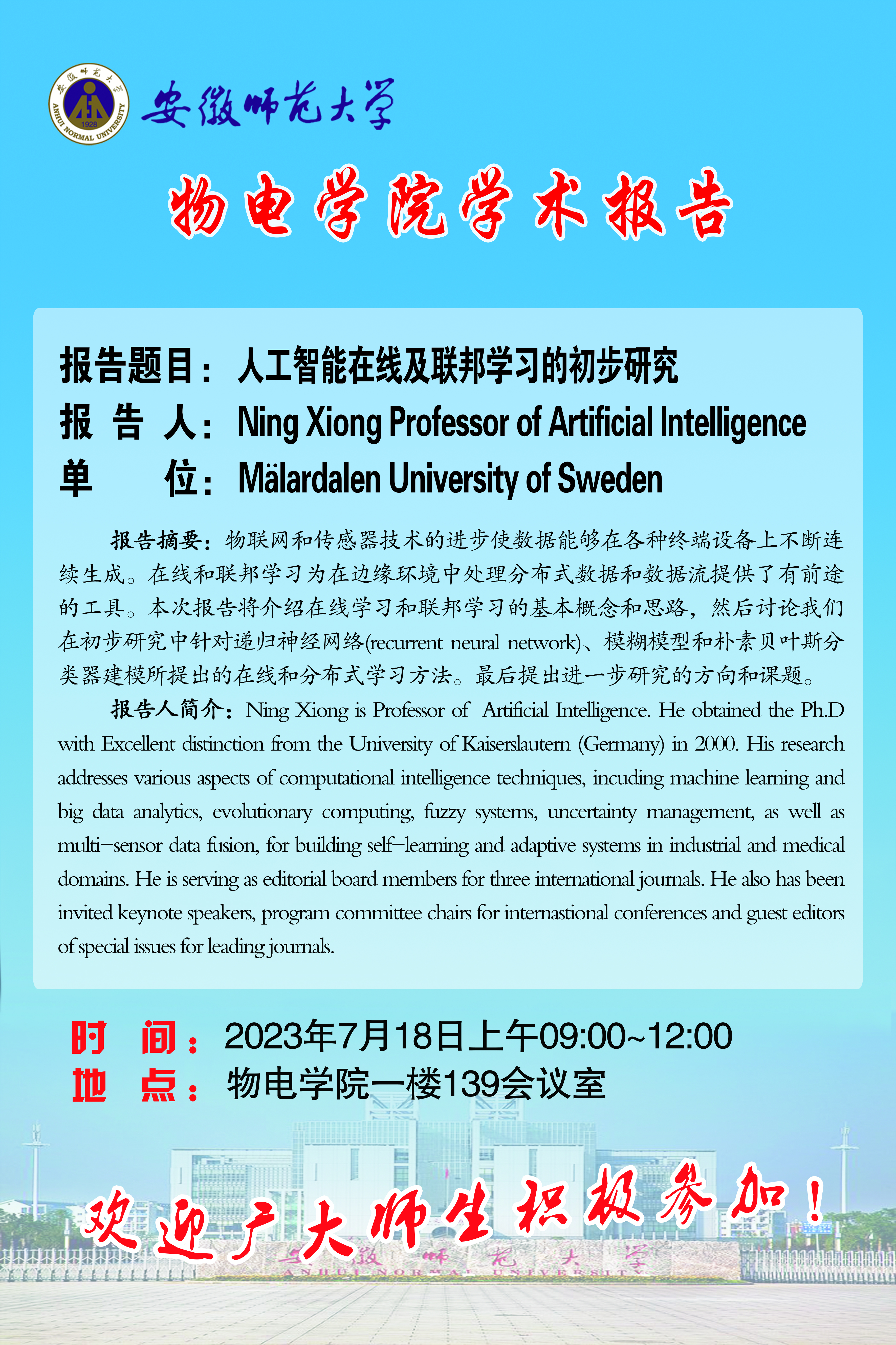 地址:花津校区-安徽省芜湖市九华南路189号 邮编:241000 电话:0553--3869894