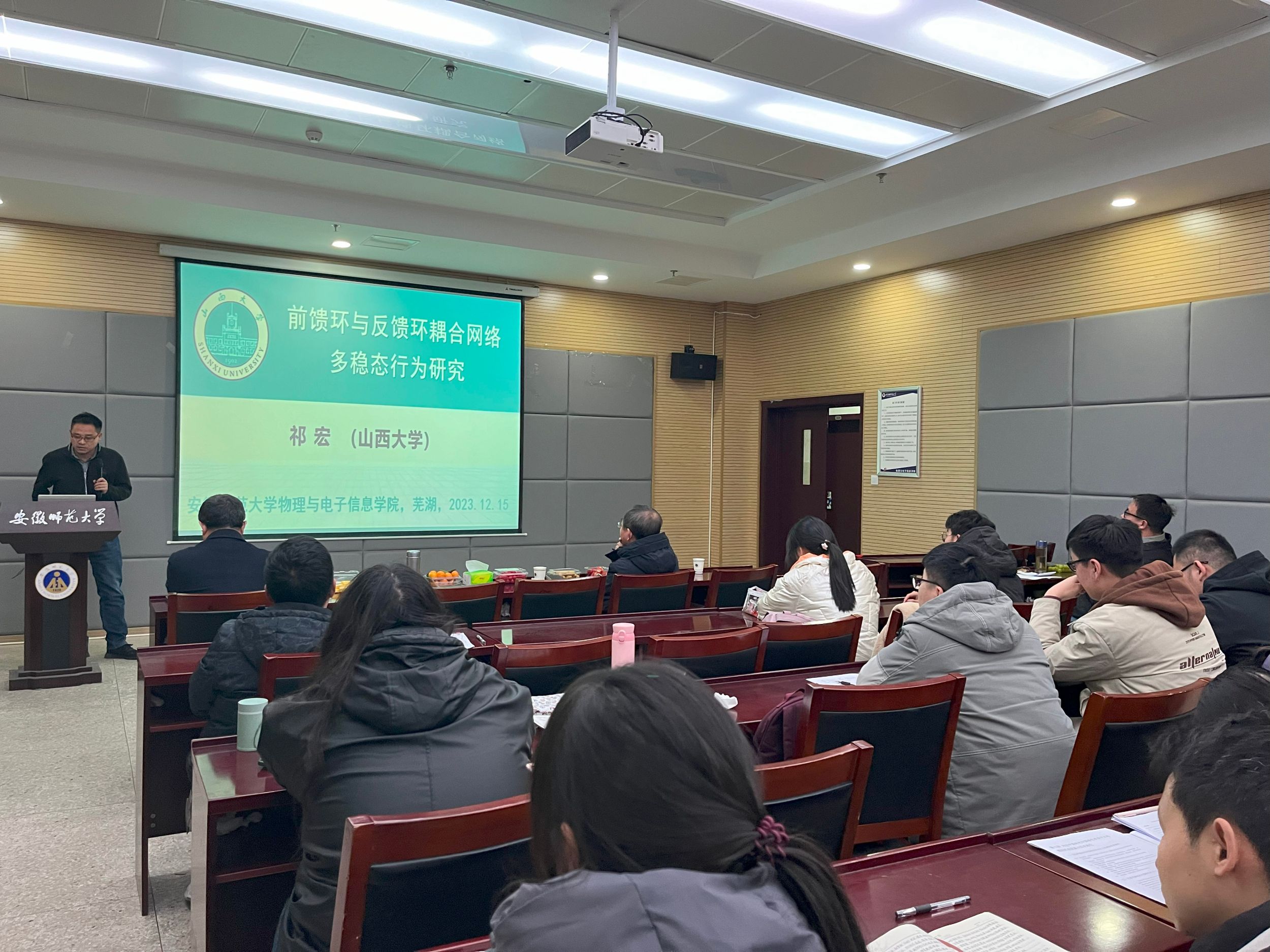 本网讯(m88)应m88邀请,山西大学祁宏副教授于12月15日来校进行学术交流,并做了题为《前馈环与反馈环耦合网络多稳态行为研究》的学术报告。报告会在公司335会议室举行,会议由吕建平教授主持,m88相关专业师生参加了本次报告会。