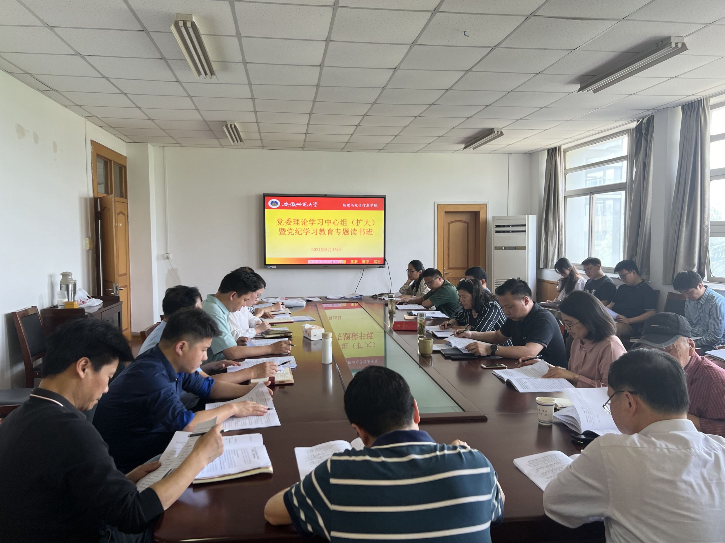 5月15日下午,m88召开党委理论学习中心组(扩大)学习会暨党纪学习教育专题读书班。院领导班子成员、党委委员、纪委委员、党支部书记、各科室秘书及全体专兼职辅导员参加会议。公司党委书记李娟主持会议。
