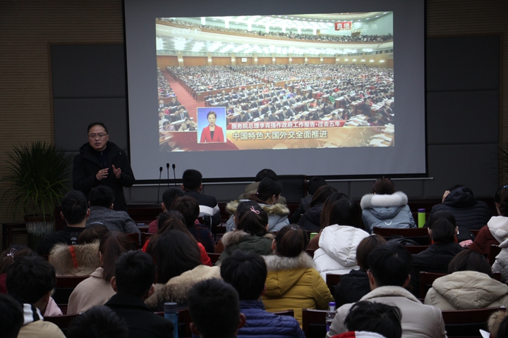 2016研究生李子旻同学说到:李克强作政府工作报告中,提到了关于2018年政府的工作计划中,明确了很多与人民生活息息相关的政策,提升个人所得税起征点,移动网络流量资费等都是给人民的幸福生活紧密相连的,可以说这是我们政府与时俱进的一种表现,紧跟时代发展的新步伐,在新时代的社会背景下,大到国家,小到个人都应在发展的道路上用于探索,与时俱进创建出符合人民意志的好路子。以后努力做到:更新观念,终身学习;勇于探索,与时俱进;立足本职,踏实工作。
