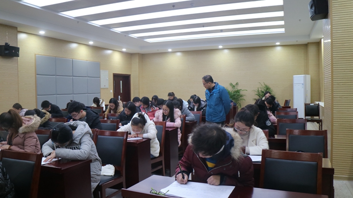 考前,公司党委副书记吴长义亲临现场,强调以考促学,注重考试诚信,发挥员工模范带头作用。晚上七点考试准时开始,大家奋笔疾书,历时两个小时的考试,所有考生均完成考试,考场秩序井然。
