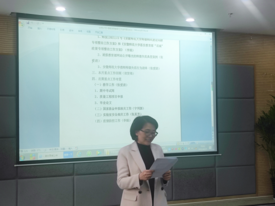 郑贤锋回顾了近一个月公司的教学、科研、群团工作等,对取得的成绩表示肯定,对存在的问题进行了分析与强调;李娟要求全体教职工高度重视疫情防控工作,严格落实疫情防控要求;随后,公司各分管领导对下一阶段的教学、科研、安全等工作进行了部署安排。