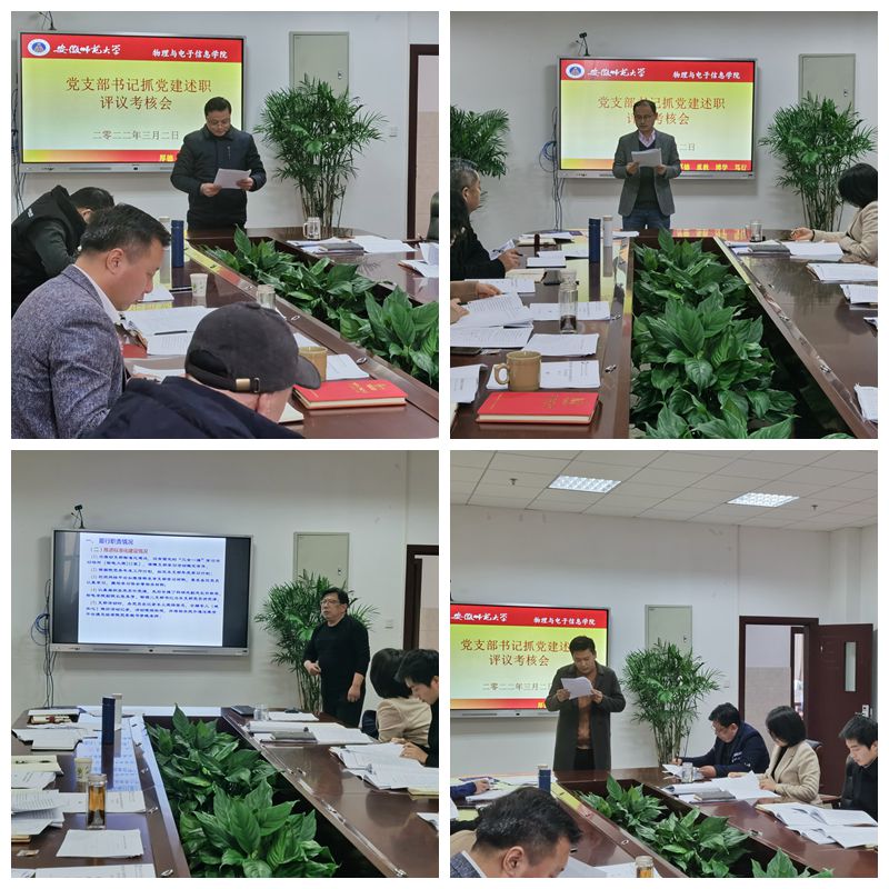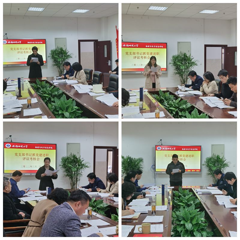黄友生首先对述职评议工作的具体要求进行了说明和强调。本次现场述职是退休教工党支部、物理一教工党支部、物理二教工党支部、自动化教工党支部、光电信息科学与工程本科生党支部、电子信息工程本科生党支部、自动化本科生党支部、物理学本科生党支部、2020级研究生党支部,其它6个党支部进行了书面述职。各位支部书记重点围绕2021年履行职责情况、存在问题及分析、2022年党建工作主要思路依次进行述职。