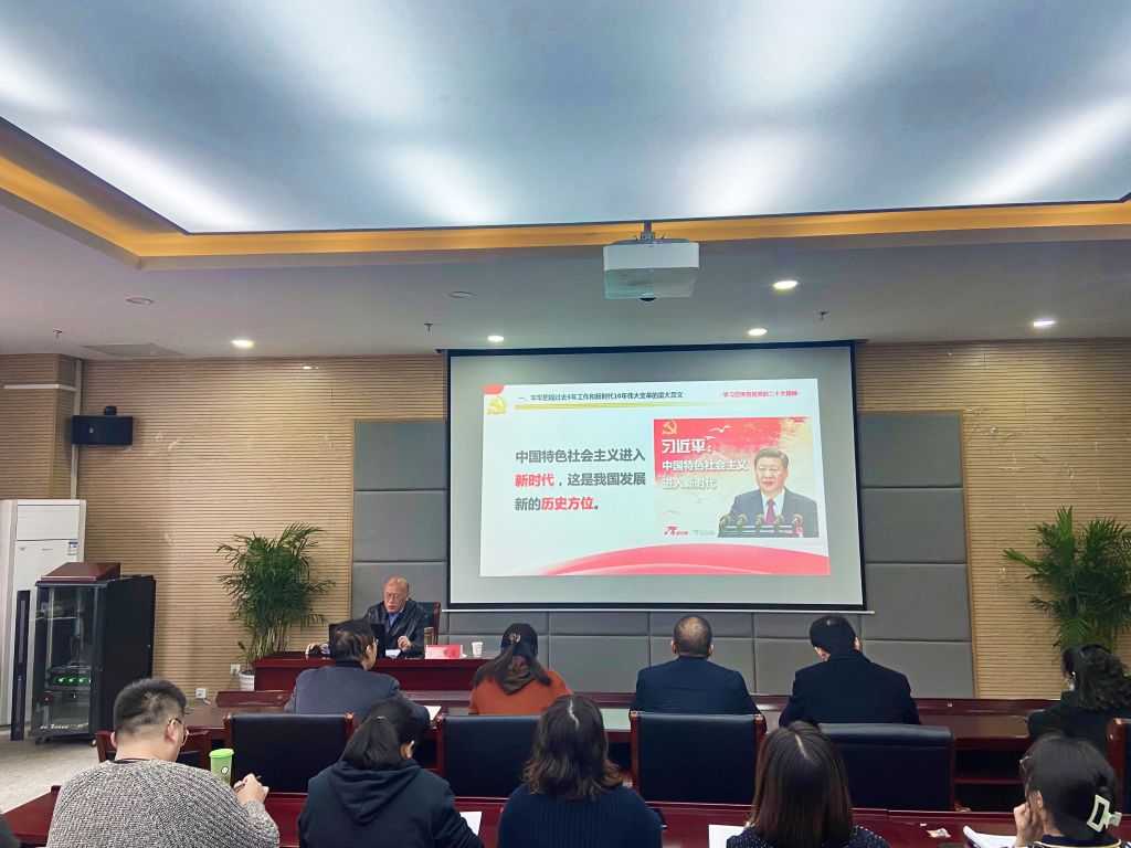 周新发指出,党的二十大是在全党全国各族人民迈上全面建设社会主义现代化国家新征程、向第二个百年奋斗目标进军的关键时刻召开的一次十分重要的大会,报告首次将教育、科技、人才进行“三位一体”统筹安排、一体部署,明确了科教兴国战略在新时代的科学内涵和使命任务,充分体现了教育在社会主义现代化强国建设中的重要地位,极具战略意义和深远影响,他要求全体师生要把学习领会习近平总书记重要讲话精神与学习讨论党的二十大报告结合起来,在学思践行中深刻领会其精神实质。