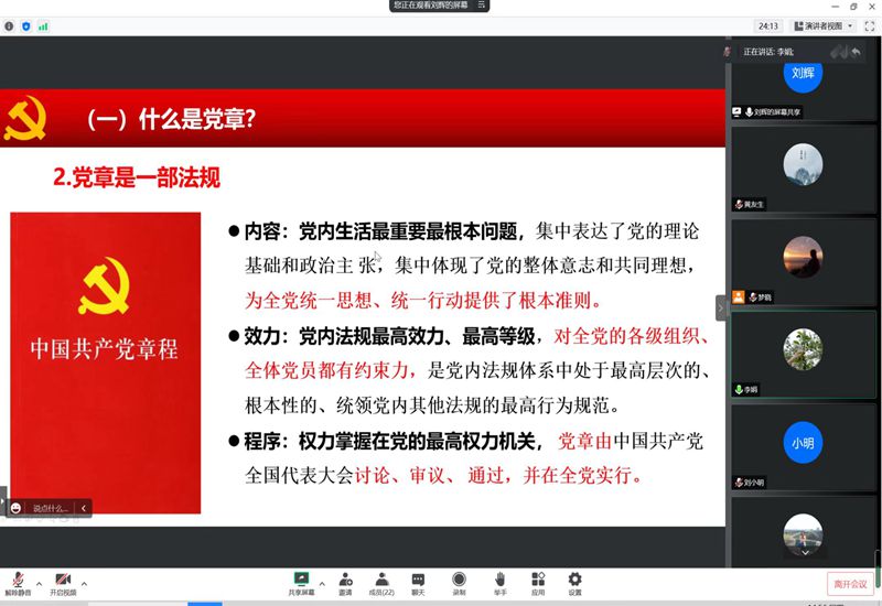 李娟在总结讲话中指出,全体与会人员要把学习贯彻党章作为学习贯彻党的二十大精神的重要内容,认真学习党章,坚持做到学深悟透,要原原本本学、联系实际学、深入思考学,切实把党章各项规定要求落实到行动上、体现在工作中,凝心聚力,履职尽责,以更加扎实的工作作风,为公司高水平大学建设贡献力量。